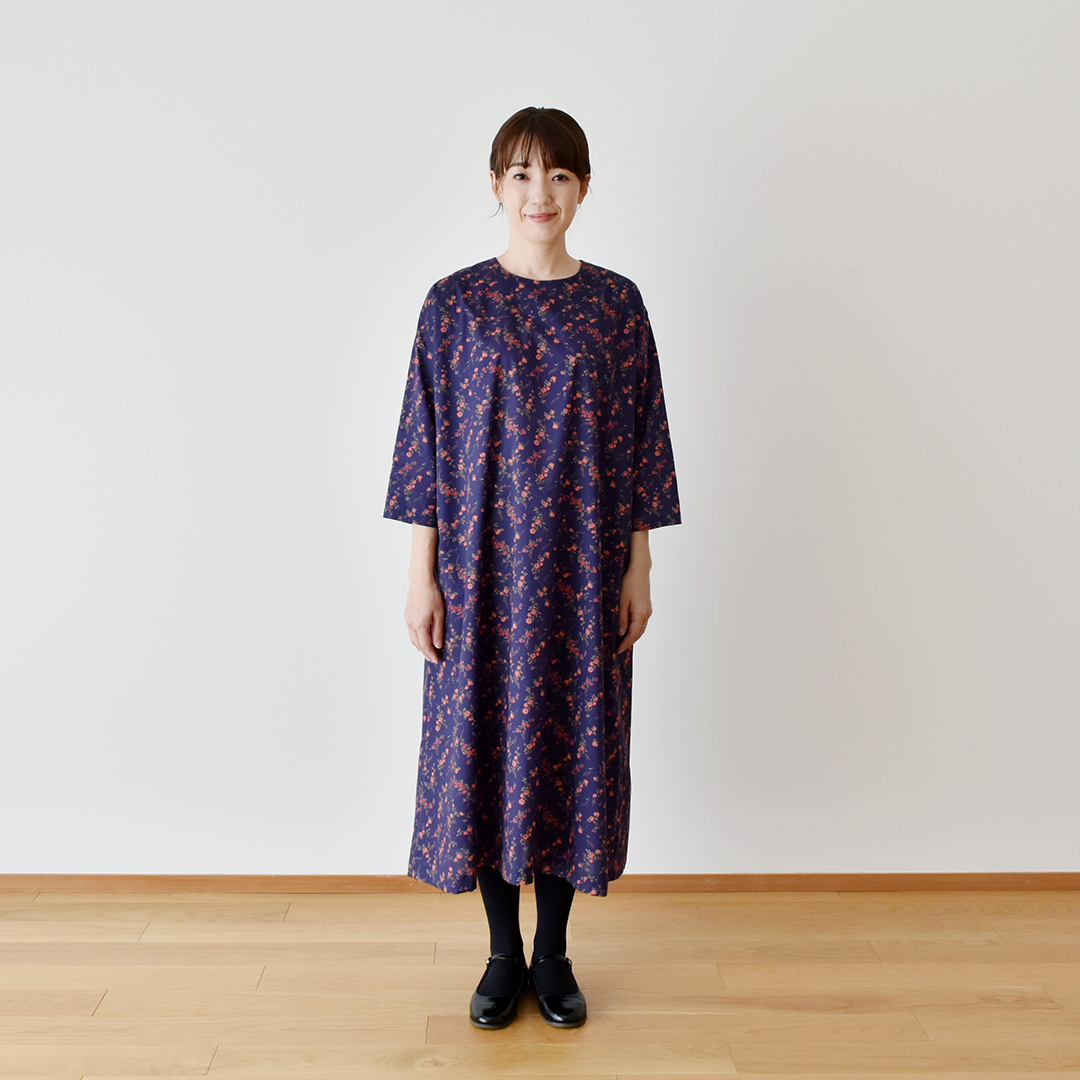 GE(ネイビー地にオレンジレッド系):『CHECK&STRIPEのおとな服 ソーイング・レメディー』(文化出版局) シンプルAラインワンピース