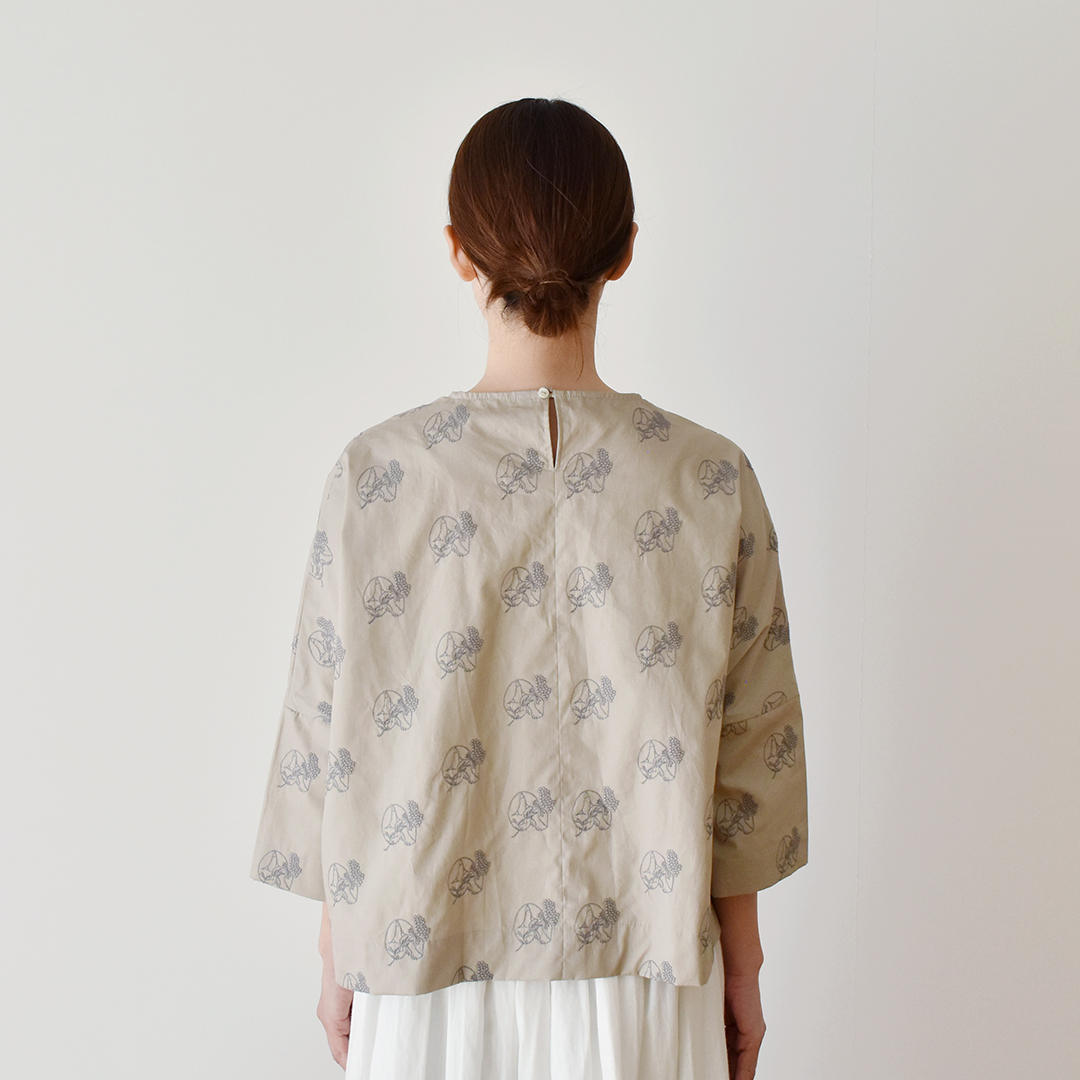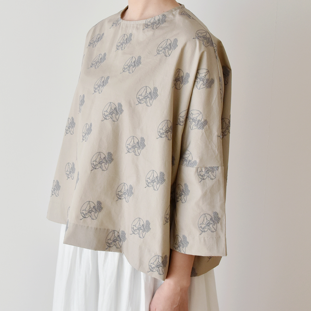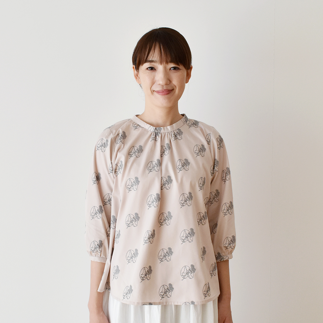 グレイッシュラベンダーにペールグレー:『CHECK&STRIPEのおとな服 ソーイング・レメディー』(文化出版局) スクエアネックのギャザーブラウス ※用尺:100cm幅×S 2.6m/M 2.7m/L 2.7m