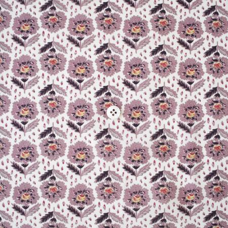1958年にリバティのマートン・プリントワークスで最初にプリントされた「ローズマリー・パス」は、スタイライズされたバラの小枝を特徴とする対称的なパターンです。小さな蕾を背景に交互に並べられたこのグラフィックで格子状のボタニカルデザインは、オリジナルの紙の印象に見られる特徴的なまだら模様の質感を保つために、スタジオによって丁寧に再描画されています。