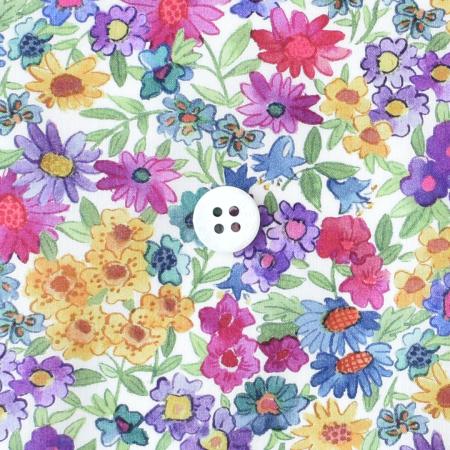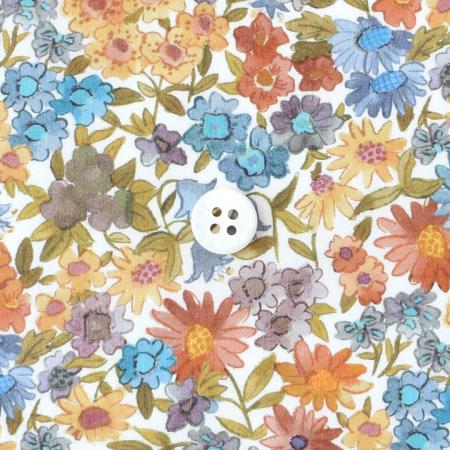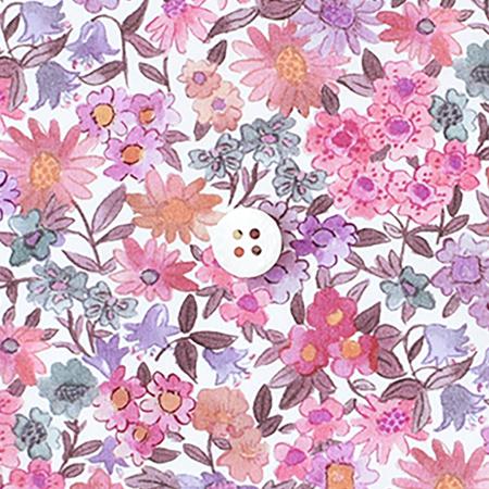 リバティの初期のウッドブロックプリントを代表する「ネル、アニー&メイ」は、リバティのアーカイブに所蔵されていた手刷りの試し刷り紙をベースに描かれました。バラ、サクラソウ、カーネーション、ブルーベル、ヒナギク、アネモネで彩られた草原が描かれています。リバティのボタニカルの真髄ともいえるこのデザインは、微妙な影の跡が、オリジナルの試し刷りのわずかな不完全さを彷彿とさせます。