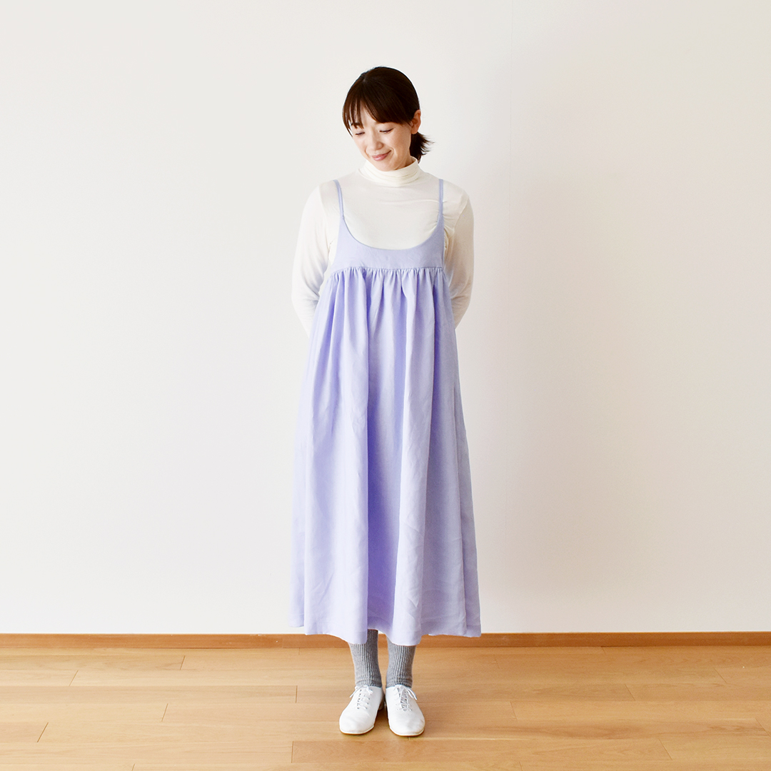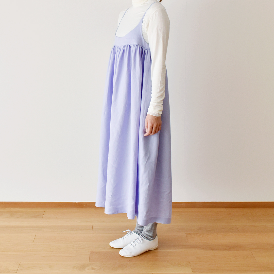 こちらの布をお買い上げのお客さまに「キャミソールワンピース」のレシピをおつけします。(サンプル:ライラック) ※用尺 110cm幅×2.4m
