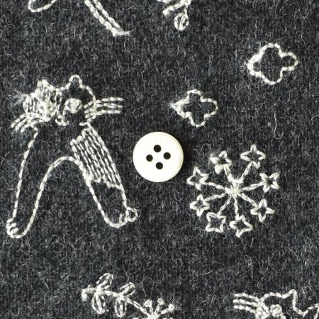 軽くてやわらかな風合いのウールに、中西なちおさんが描かれたネコと可愛らしいお花の刺繍が施されています。