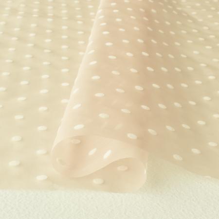 軽やかで透け感がある、しなやかなオーガンジー素材にドット柄がフロッキープリントされています。トップスやスカートなどに重ねたり、小物などにもお使いいただけます。 -