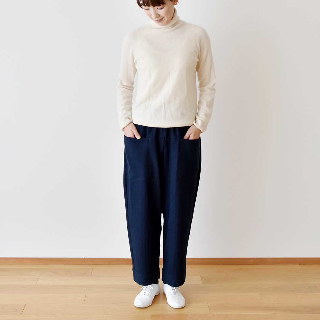 オフホワイト:『CHECK&STRIPE COLOUR BOOK 色を楽しむソーイングブック』(文化出版局) シンプルテーパードパンツ ※用尺:140cm幅×S1.7m/M1.9m/L2m