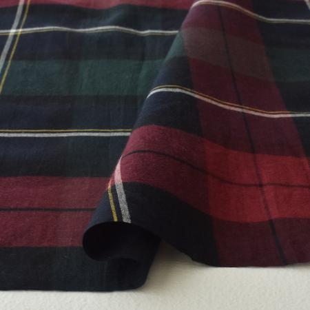 上品な光沢感のあるブラックウォッチ柄に織りあげました。
