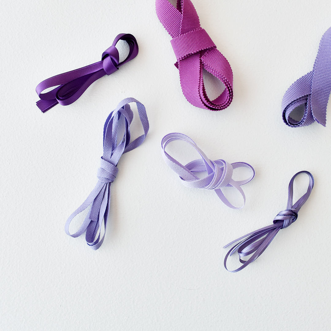 ラベンダーカラーのリバティプリントやコットン、リネンと一緒に同系色のリボンやテープを使って、巾着やバッグなど作ってみたり、色々な組み合わせをお楽しみ下さい。