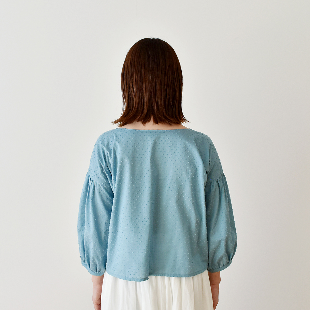 透け感のある布にカットドビーで表現された水玉がかわいい布です。