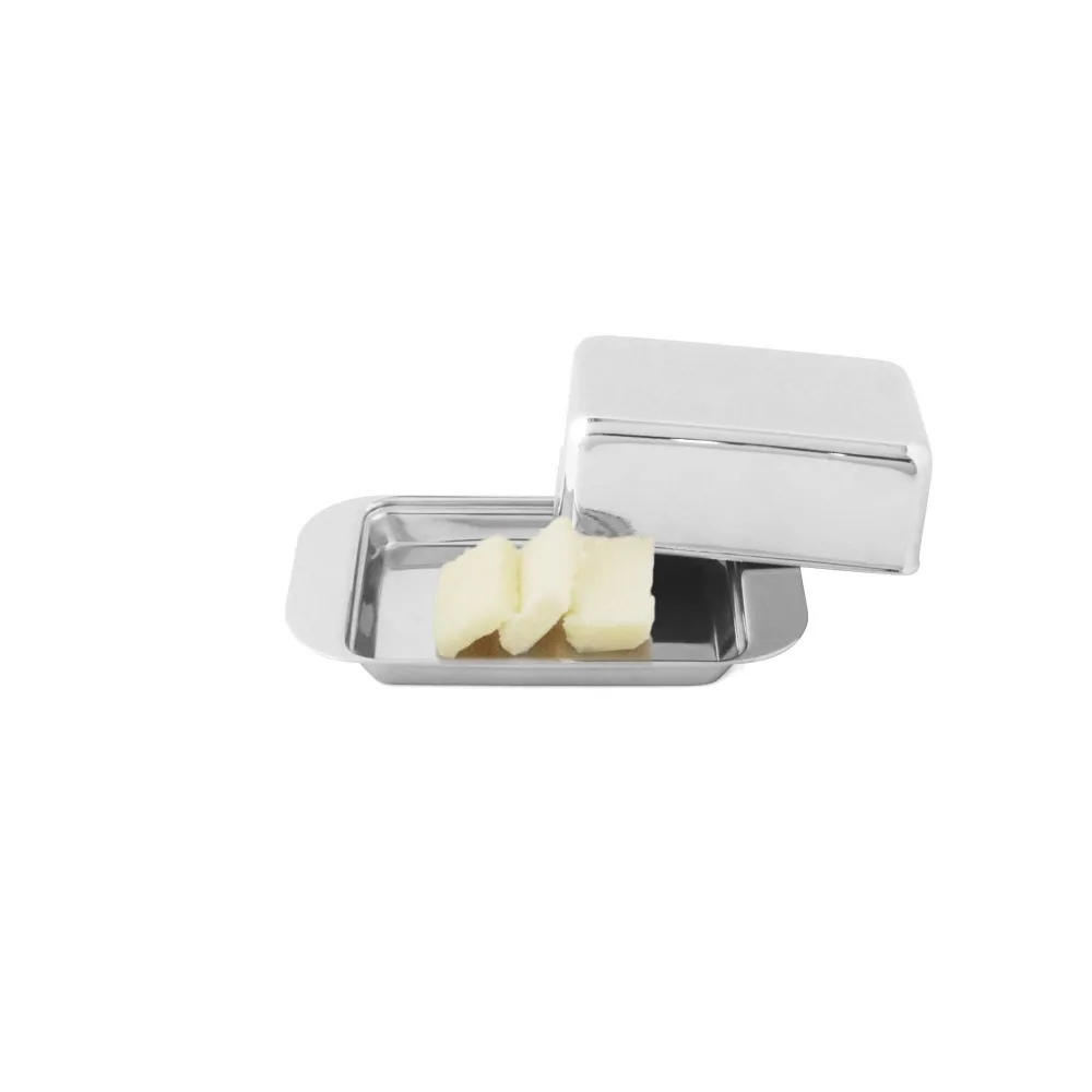 シンプルでモダンなデザインのバターケースです。朝食のテーブルにもそのまま置ける美しさで、ステンレス製なので清潔を保ちやすく、お手入れは食洗機で簡単にできます。バターだけでなく、チーズの保存やクッキーなどのお菓子をテーブルに置いておく時にも便利です。
