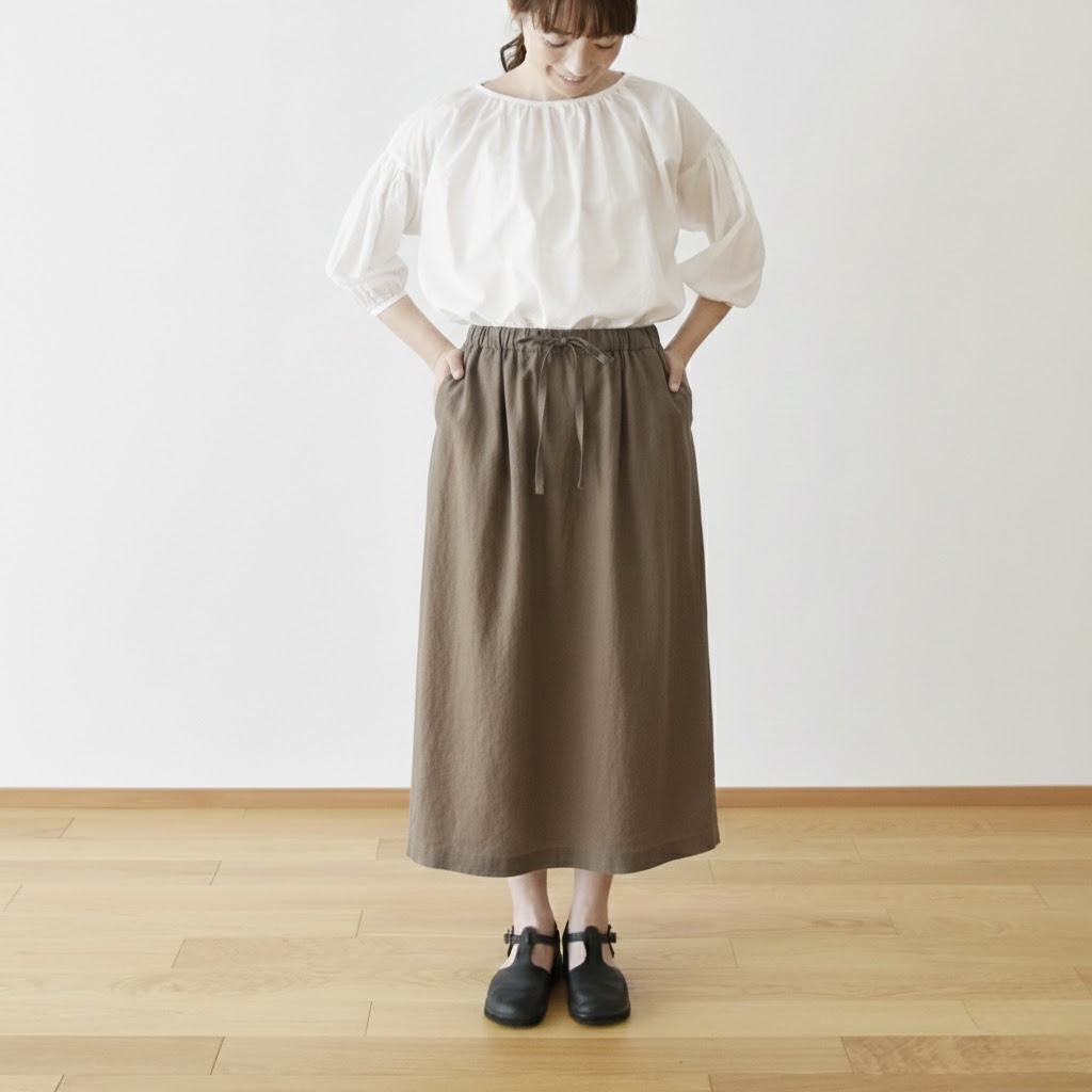 薄手ですが、ハリ感があるので、ギャザーもきれいに入ります。