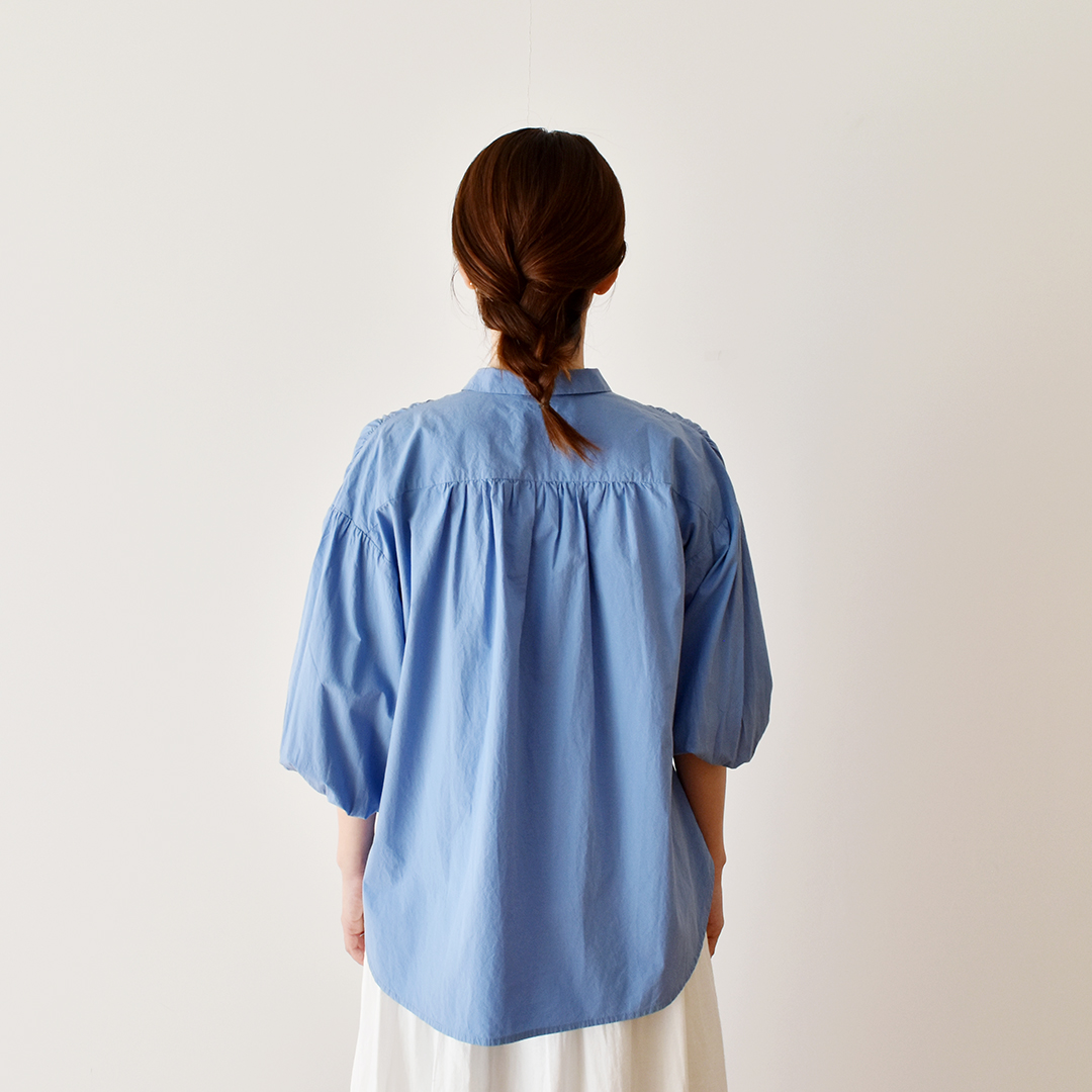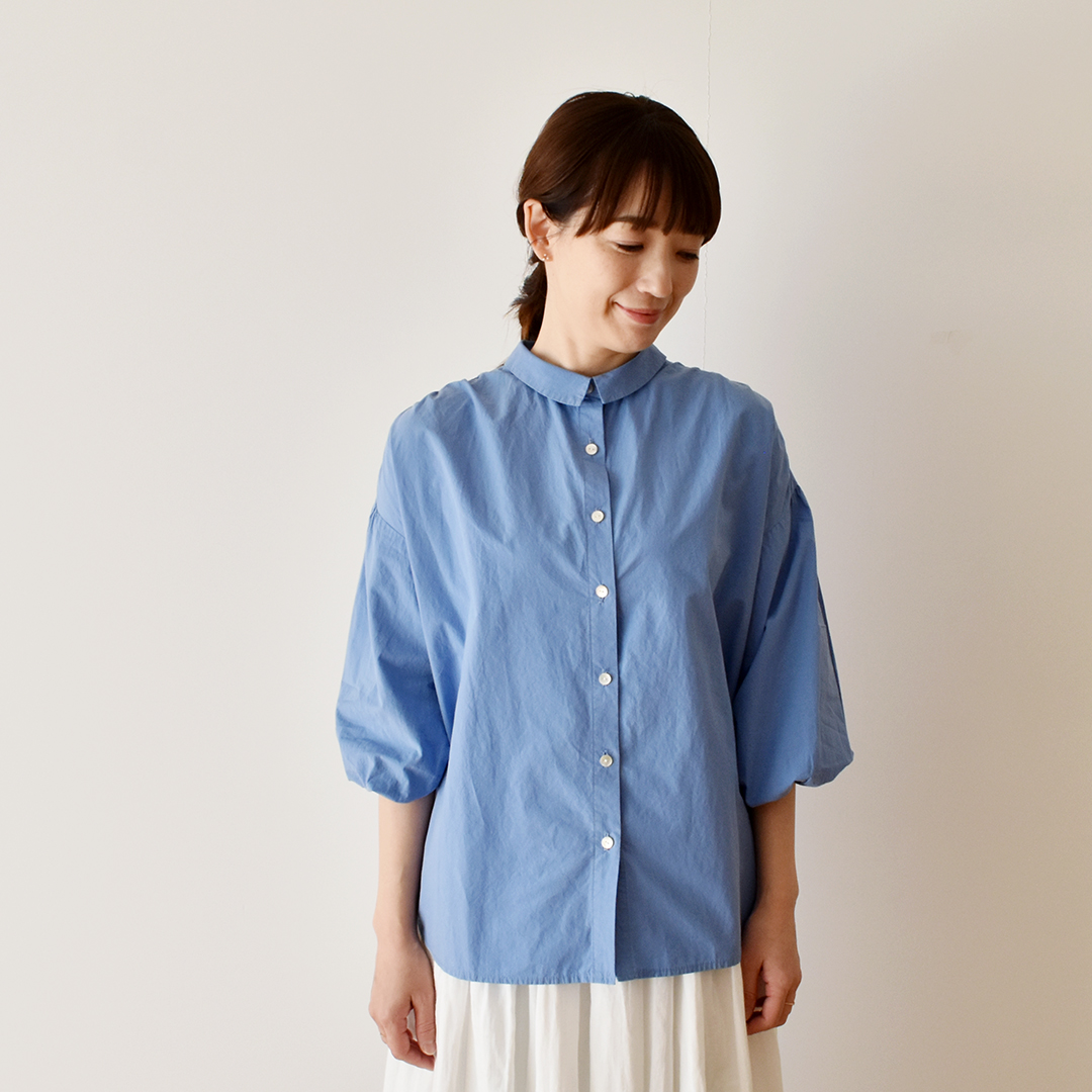 あじさいブルー:『CHECK&STRIPE Sewing Diary in Paris パリのソーイングダイアリー』(世界文化社) ふんわり袖のブラウス