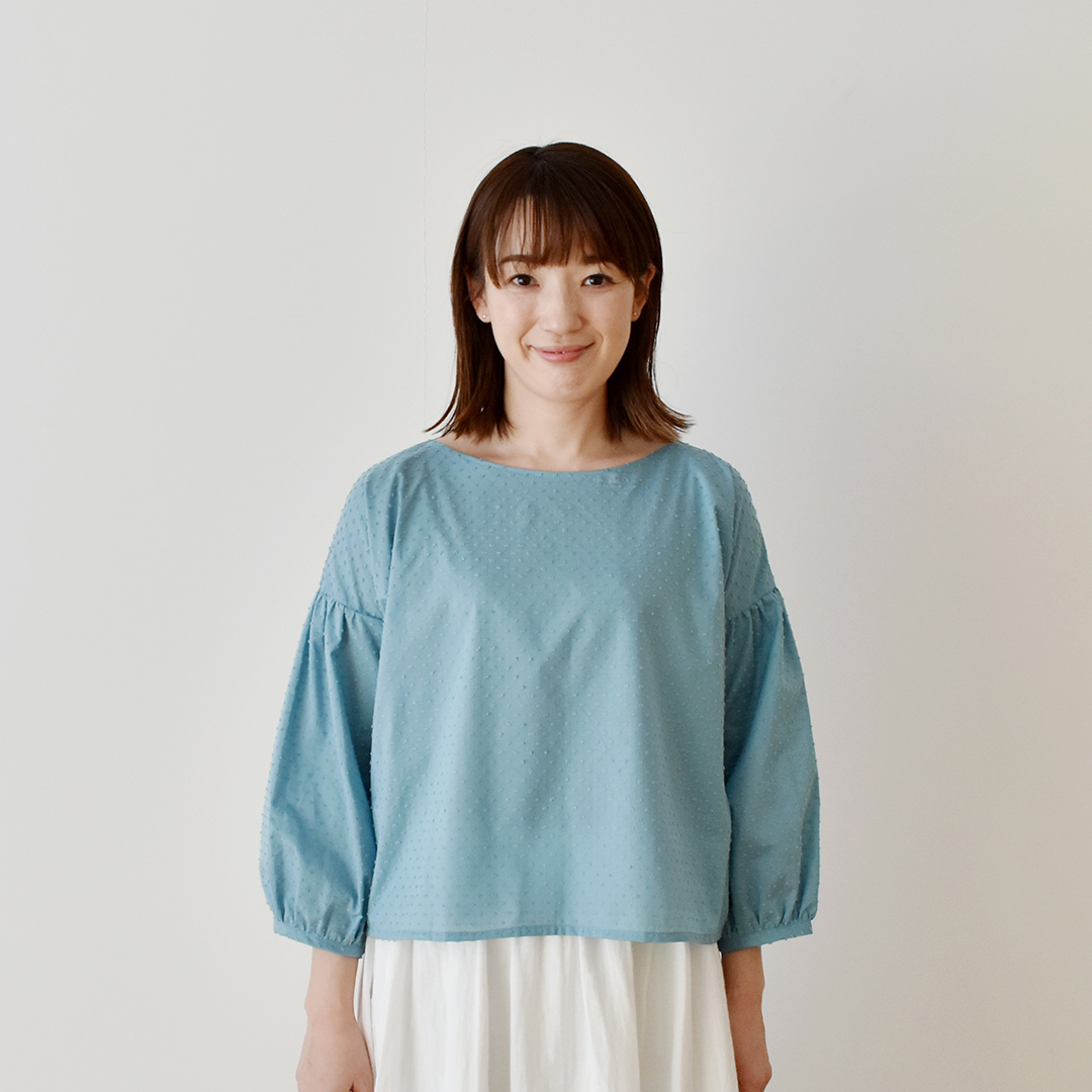 こちらの布をお買い上げのお客さまに、デイリープルオーバー(ふんわり袖)のおまけレシピをお付けします。(サンプル:フォゲットミーノット) ※用尺:105cm幅× 1.6m