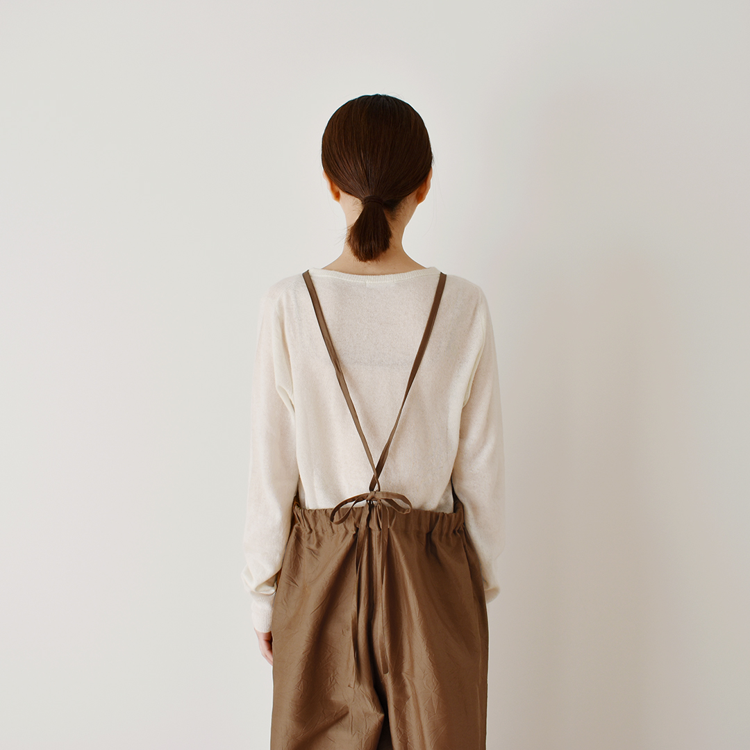 シンプルなシャツやワンピース、ギャザーの入ったブラウス、ゆったりとしたギャザーワイドパンツなどにもおすすめです。