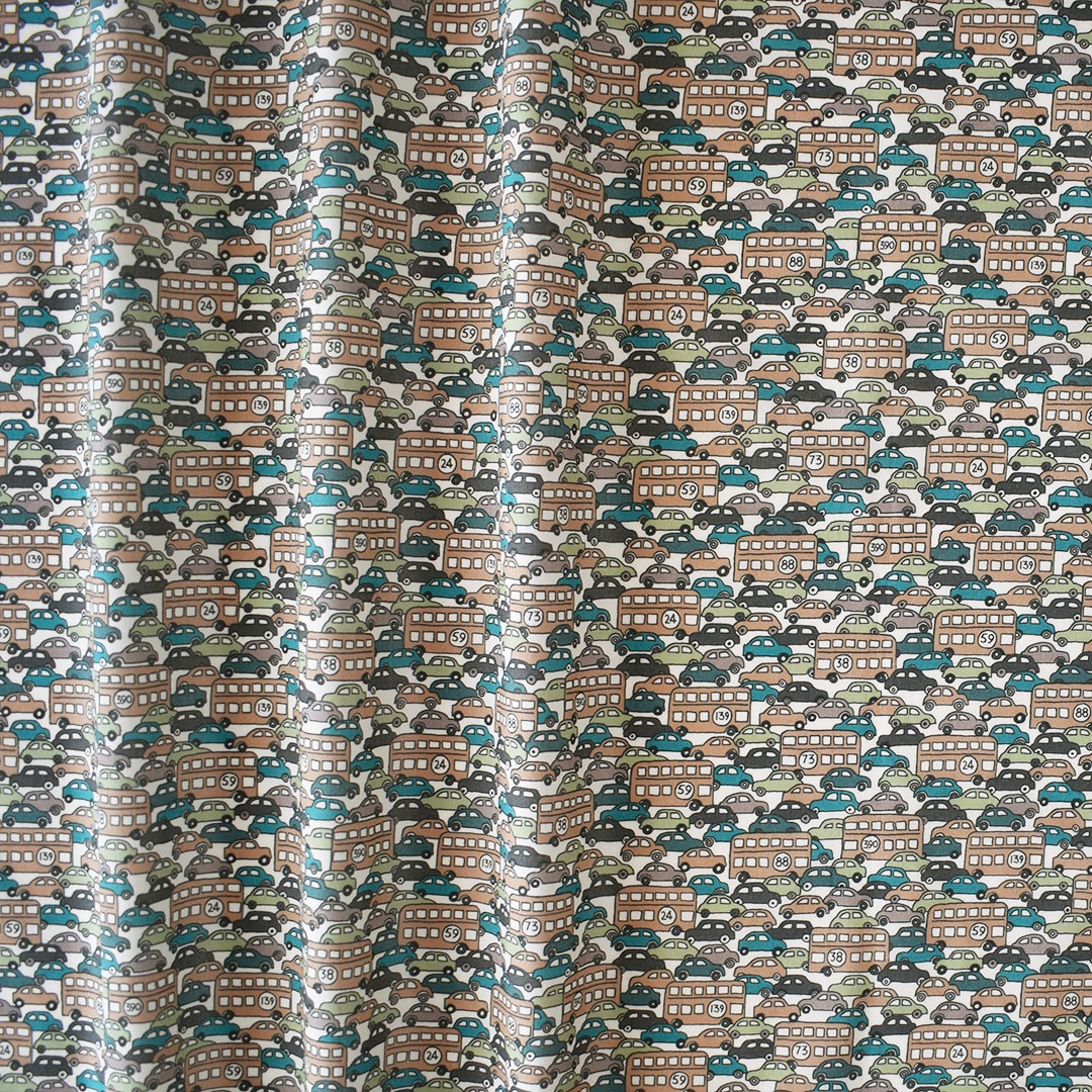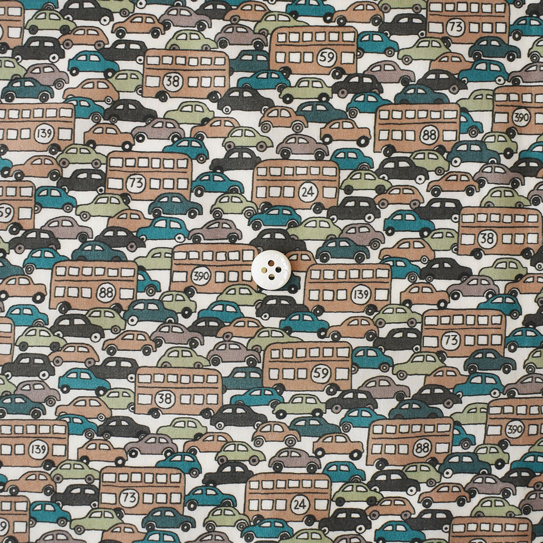 人気のカンバセーショナルデザイン「カーズ」をアップデートしたデザインで、究極の交通渋滞を表現し格子状に並んだ1950年代風の車とバスが描かれています。大人向けだと風変わりなレトロなパターンに、子供向けには生意気なデザインです。
