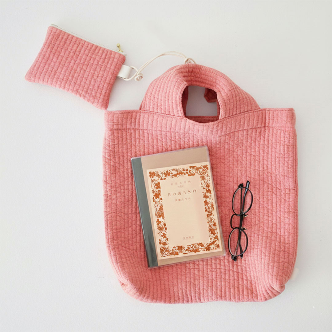 ヌビキルト クムで作るあたたかみのあるバッグとポーチのセットです。