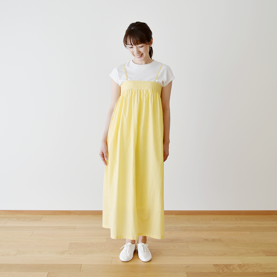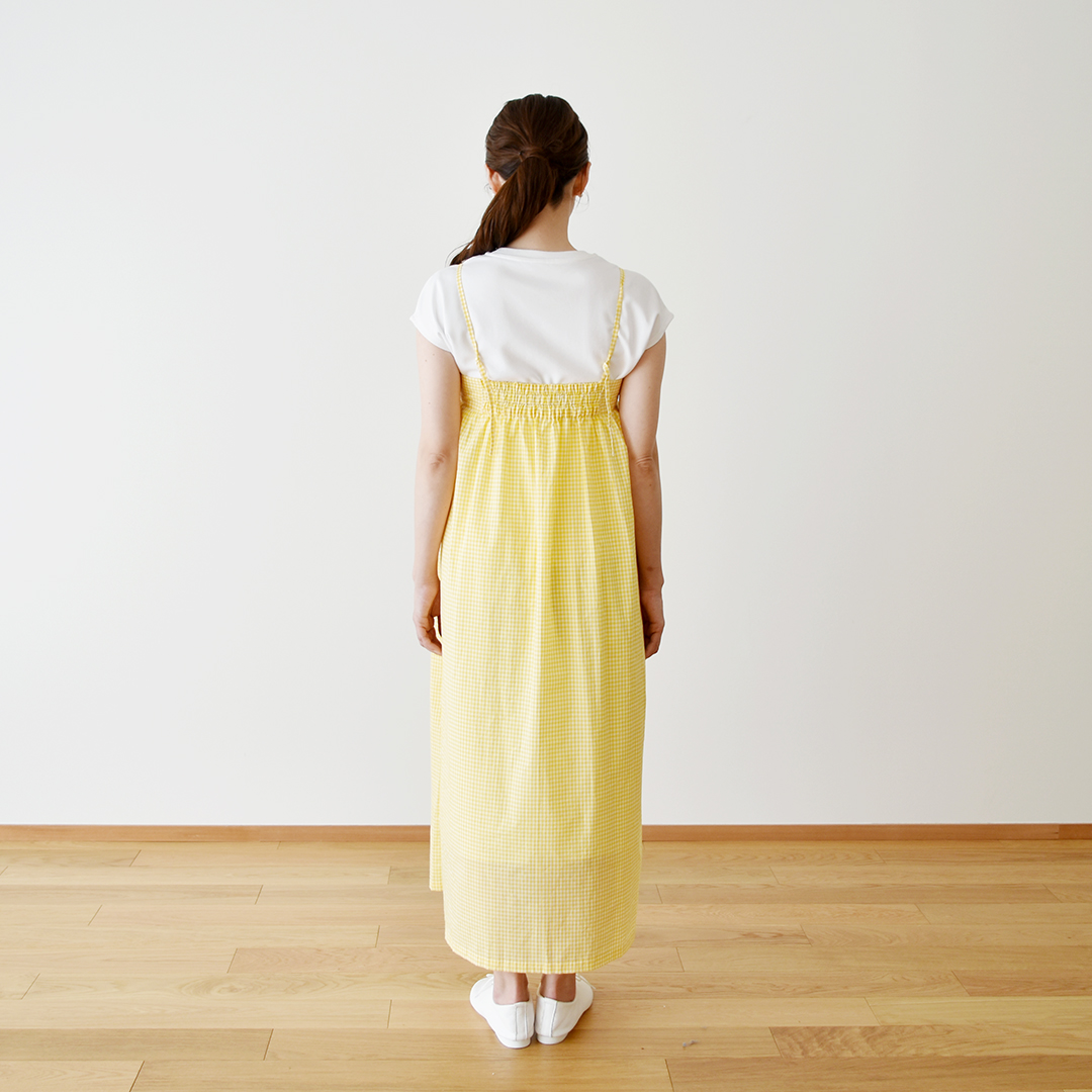 (後ろゴムのギャザードレス)C&Sオリジナルギンガムチェック きいろ