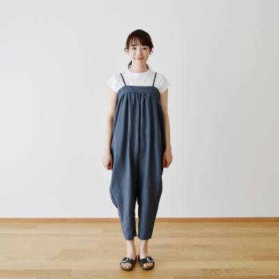 (後ろゴムのギャザーサロペット)C&Sリネンプリマベーラ ダークブルー -
