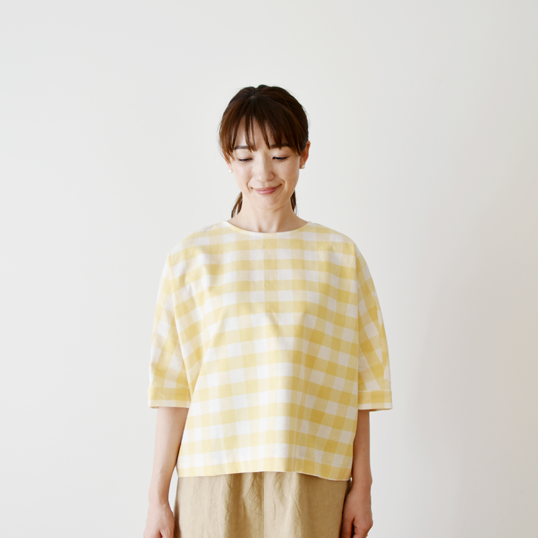 (シンプルドルマンブラウス)C&S洗いざらしのハーフリネンダンガリーブロックチェック ひよこ(小) -