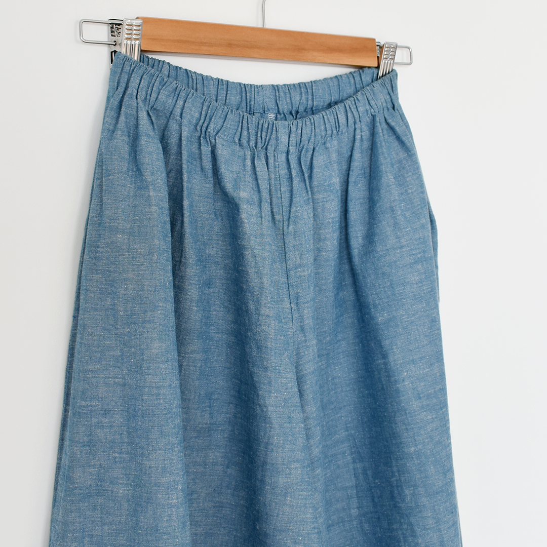 パンツやスカートにしても丈夫で、ざぶざぶ洗っていただけます。ソフト加工の洗いをかけることで、やわらかさと麻のシャリ感を残した風合いが特徴です。