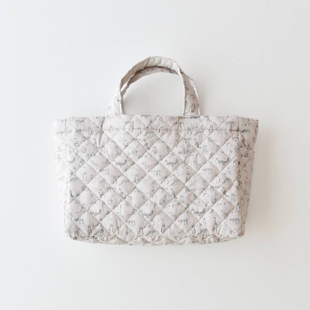 こちらの布をお買い上げのお客さまに、キルティングで作るサイドポケットのトートバッグのレシピをお付けします。オンラインでは初めてご紹介するレシピです。(サンプル:Meow-petit ◎J24F(マッシュルーム)) ※用尺:100cm幅× 70cm