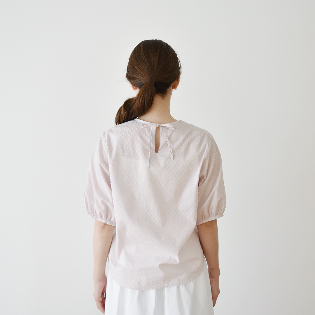 (後ろリボンのパフブラウス)C&Sドットミニヨン ピンクラベンダー