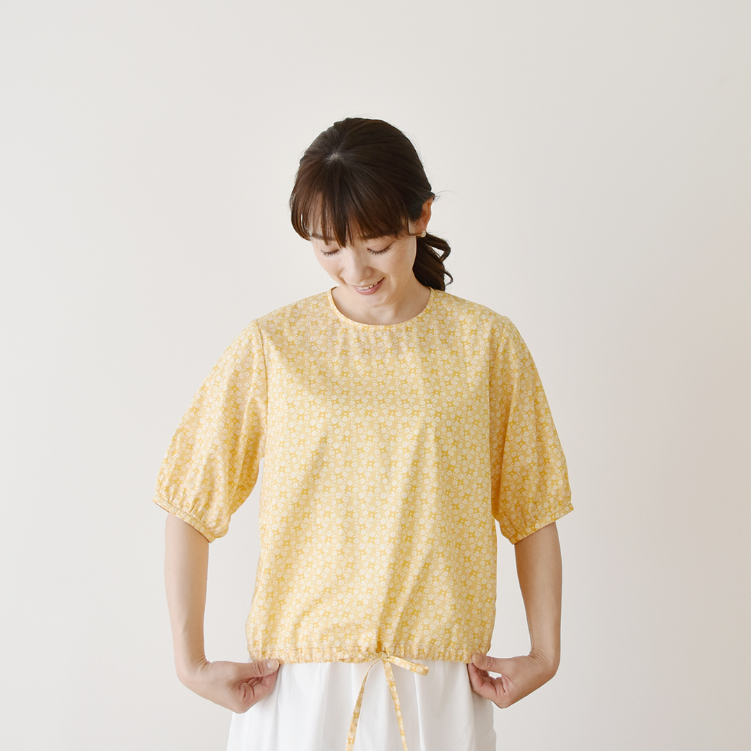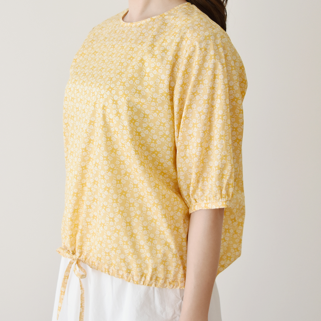 (フロントリボンのパフブラウス)リバティプリント Milliie(◎J11C マスタード) -