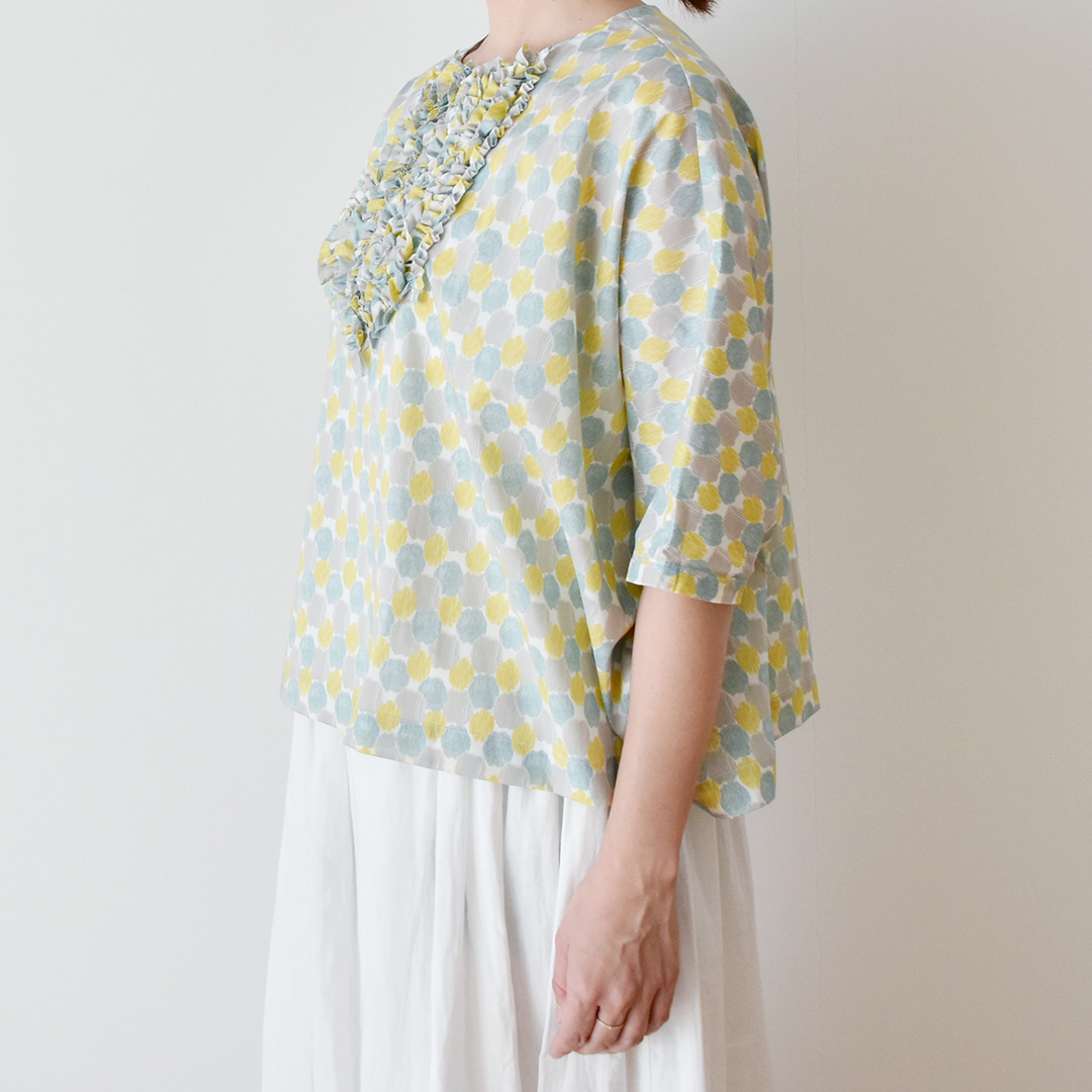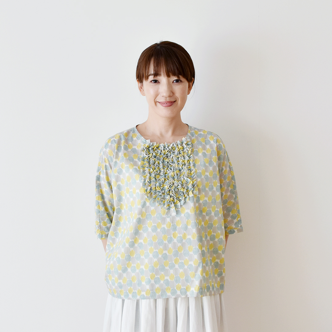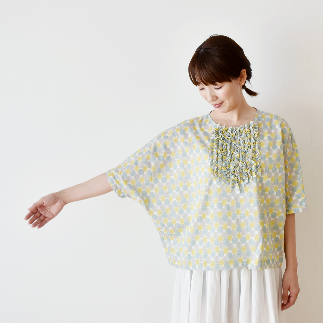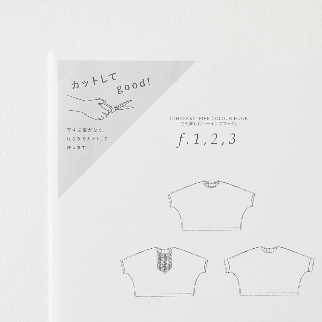 ◎J22A(ライトグレー・ペールグリーン・マスタード系):『CHECK&STRIPE COLOUR BOOK 色を楽しむソーイングブック』(文化出版局) ホワイトセージのブラウス
