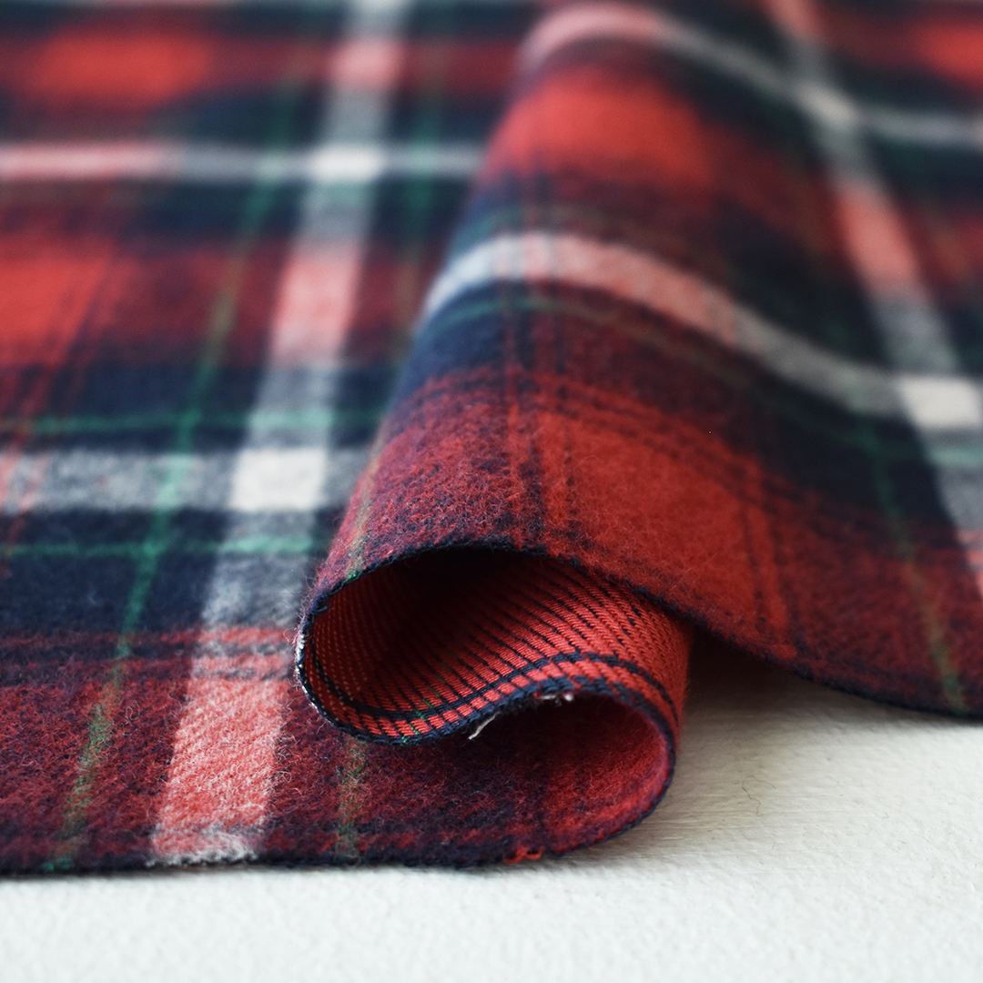 やわらかく織られたコットンに片面起毛を施したチェックです。