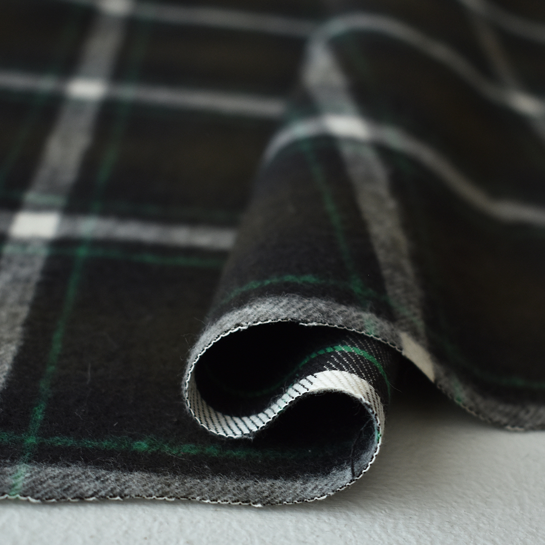 やわらかく織られたコットンに片面起毛を施したチェックです。