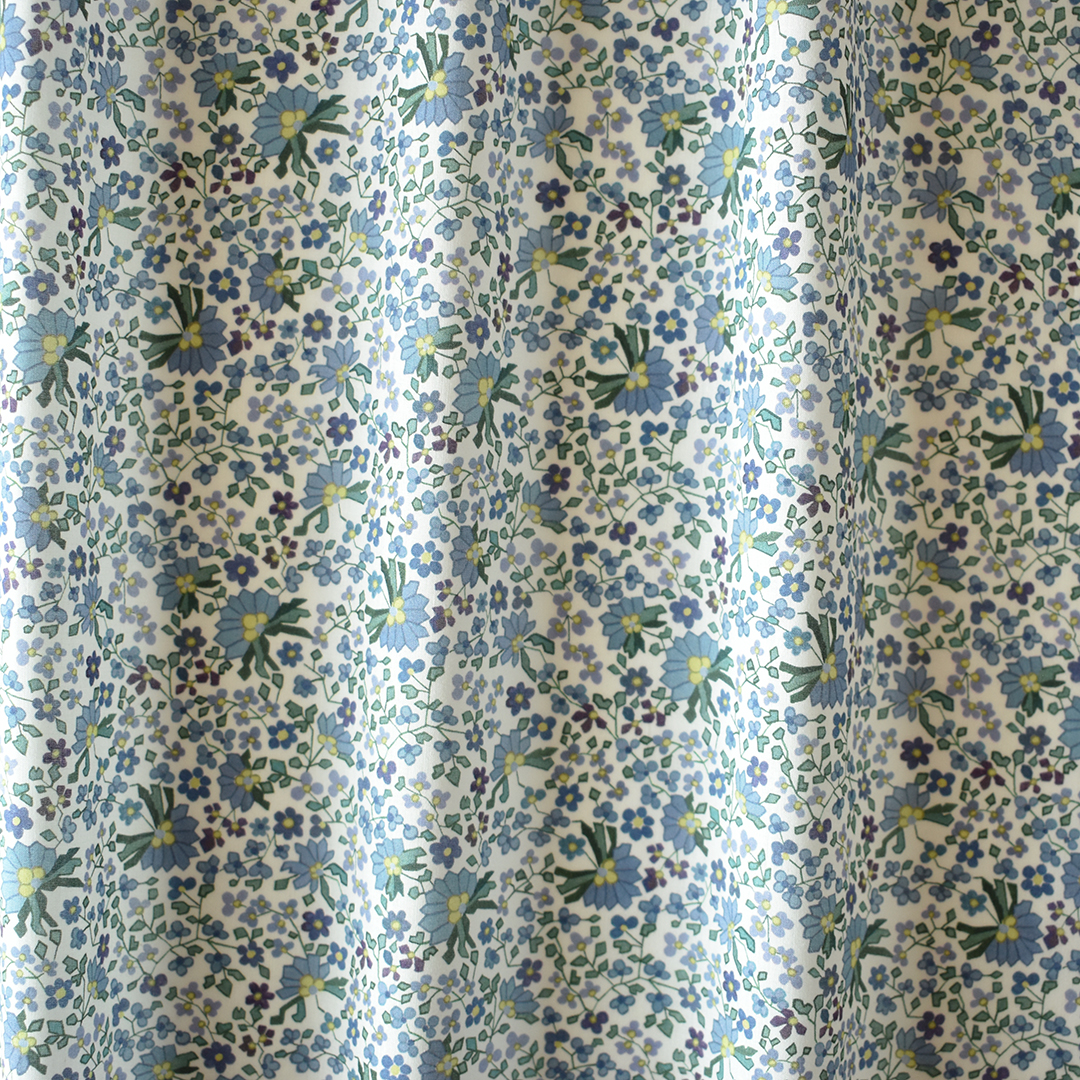 1900年代のリバティ・スカーフのデザインを基に、伝統的なモチーフを新鮮で現代的に表現した「ペイズリー・ポージー」。オリジナルでは大柄のペイズリーが特徴でしたが、この新しいバージョンは繊細な背景の花々に焦点を当てています。幾何学的な小花が多方向に入り乱れ、布地の上で絡み合うようなパターンとなりました。