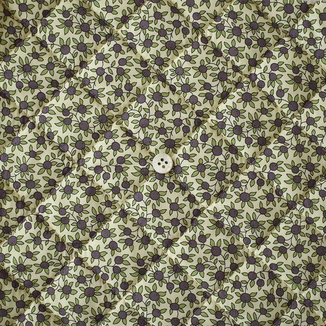 クレメンタイン(小粒みかん)がモチーフ。ペニー・クーパーによって1984年デザインされ、同年にイギリスでプリントされました。2002年秋冬コレクションのシーズナルレンジでタナローンとジャージーで再デザインされました。小さいみかんと葉をメインとした、レディースやキッズの洋服に合うようなシンプルで鮮やかな柄です。 -