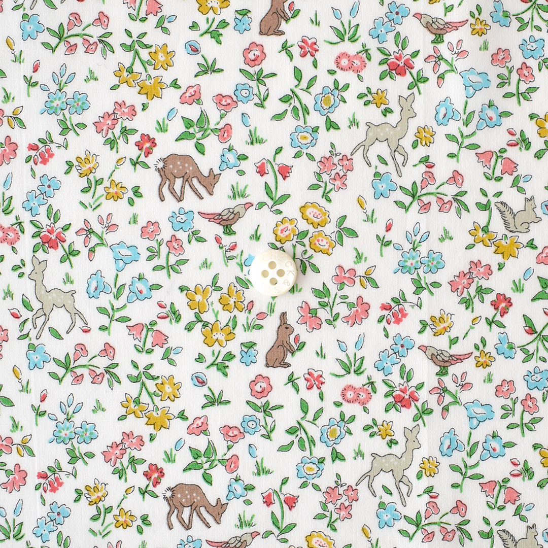 さりげない動物たちの可愛さと可憐な花柄が、作っていても着ていても、また見ているだけでも心躍る1柄です。 -