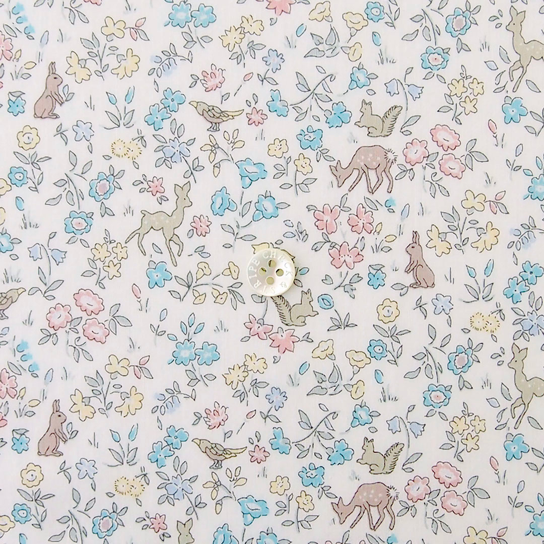 さりげない動物たちの可愛さと可憐な花柄が、作っていても着ていても、また見ているだけでも心躍る1柄です。 -