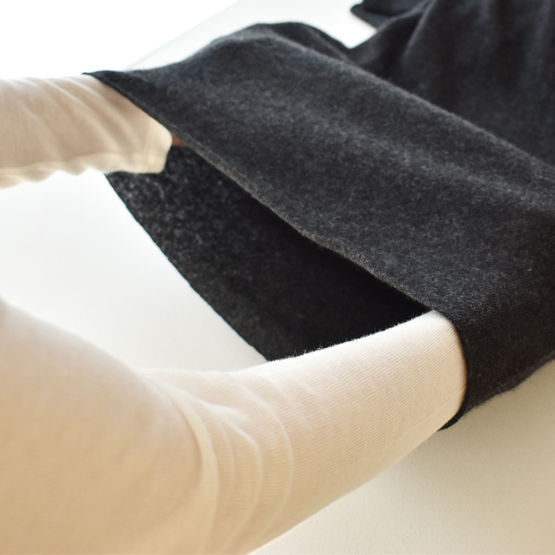 鋏や糸など使わずにお届けした袋から出して、すぐにお使い頂けます。筒を切り開かずにそのまま巻いて頂く方がマフラーとしておさまりが良く、きれいに巻いていただけます。 -