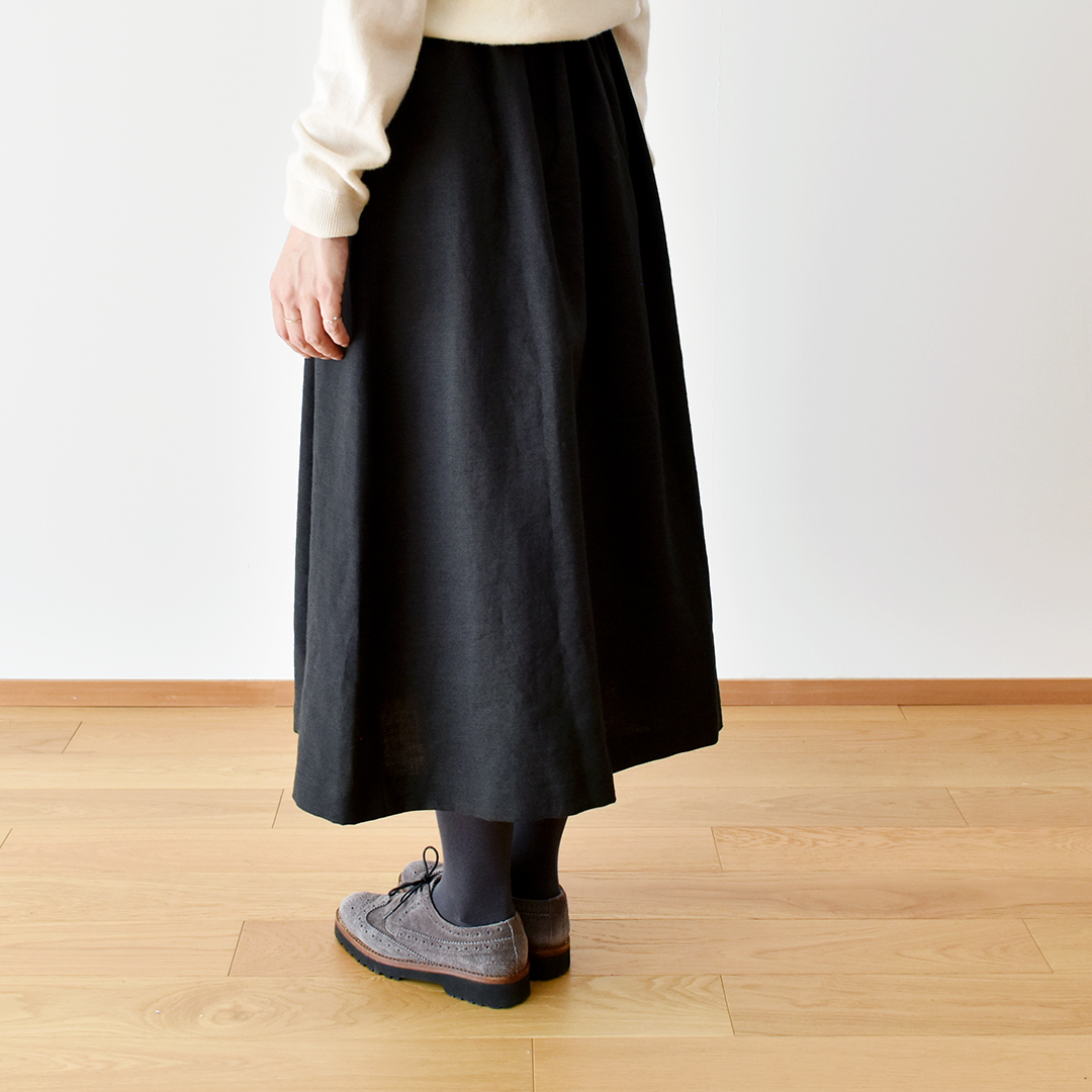 すこし薄手なので、ギャザーたっぷりのチュニックやスカート、ワンピース、パンツなどに。
