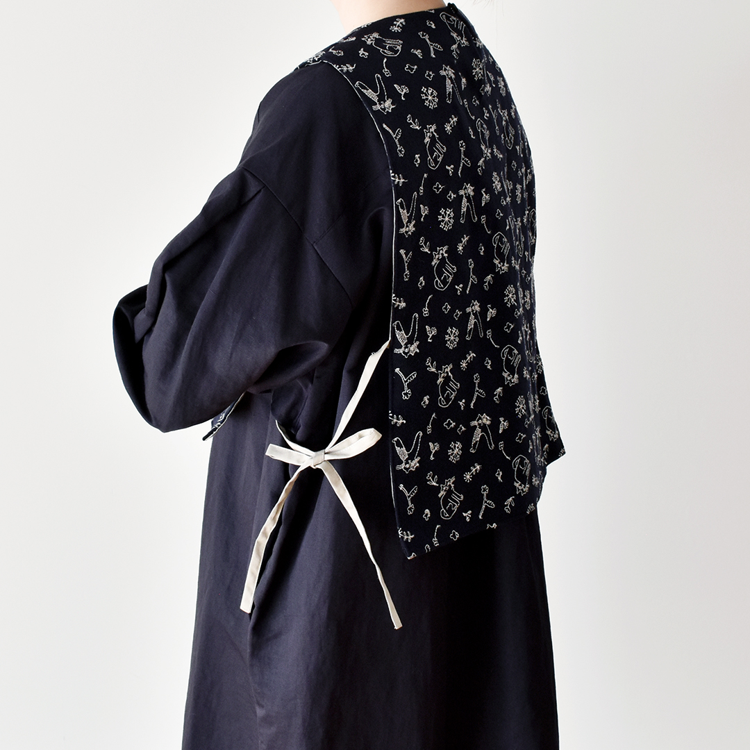 こちらの布をお買い上げのお客さまに、リバーシブルベストのレシピをお付けします。(サンプル:ネイビーにシルバーグレー) ※用尺:130cm幅×0.6m