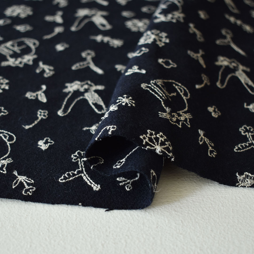 楽しいイメージあふれる刺しゅう柄は、コートやワンピース、スカート、バッグなど、ぜひお気に入りのアイテムに。 -