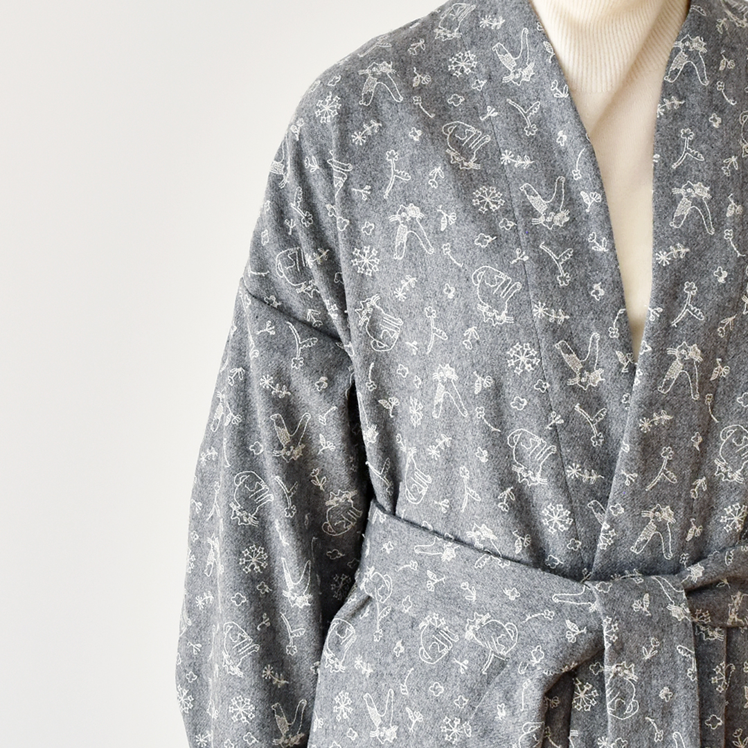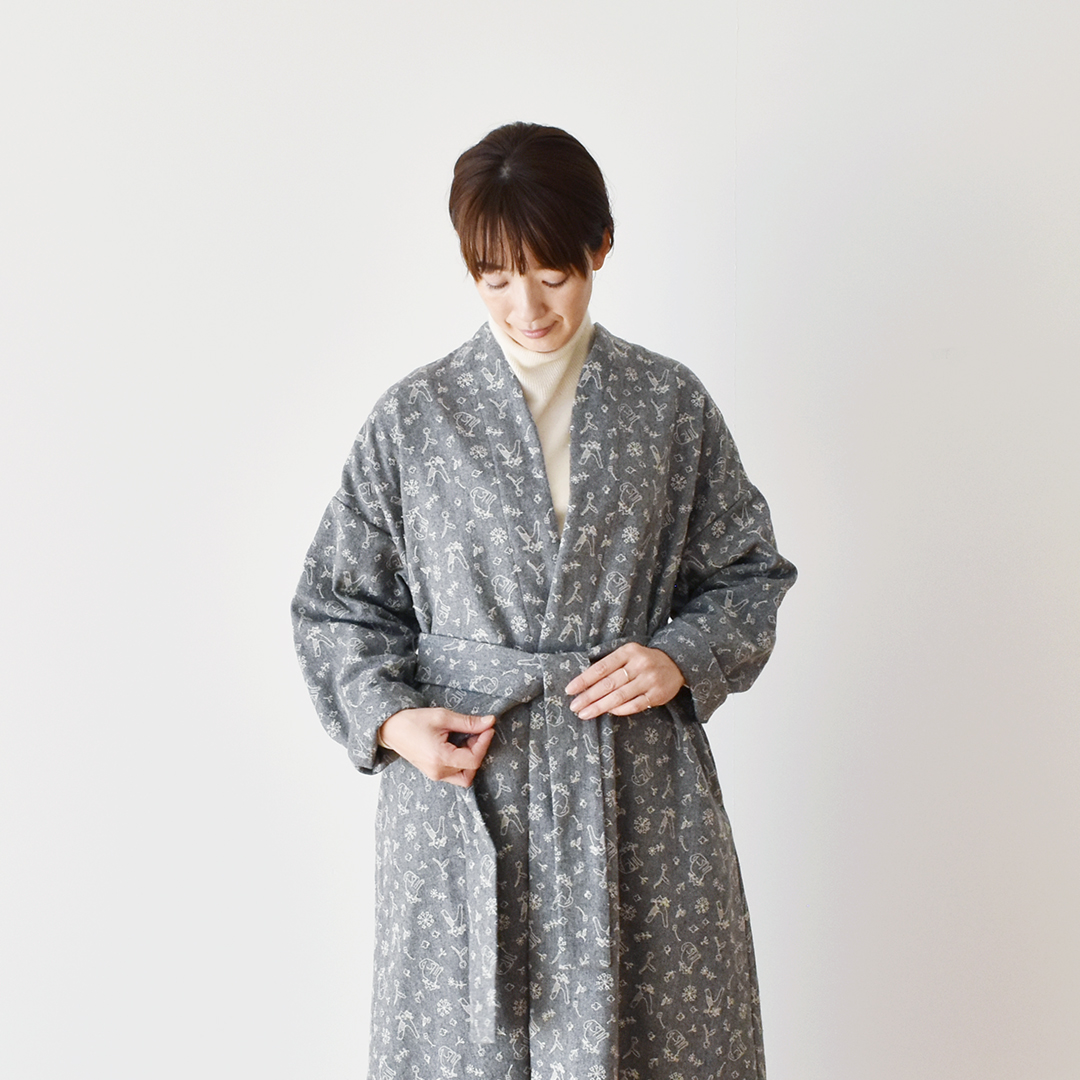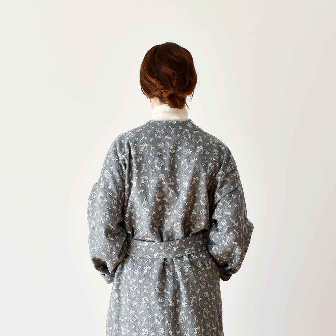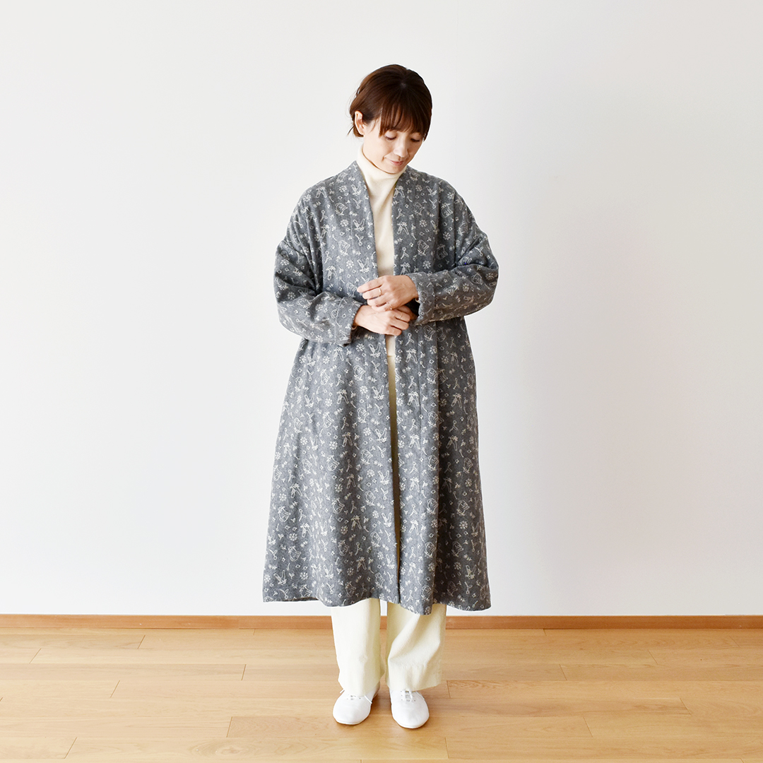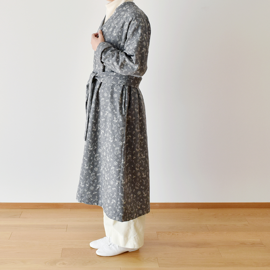 グレーにシルバーグレー:『CHECK&STRIPE SEW HAPPY』(世界文化社) ガウンコート ※用尺:130cm幅×S3.5m/M3.6m/L3.8m
