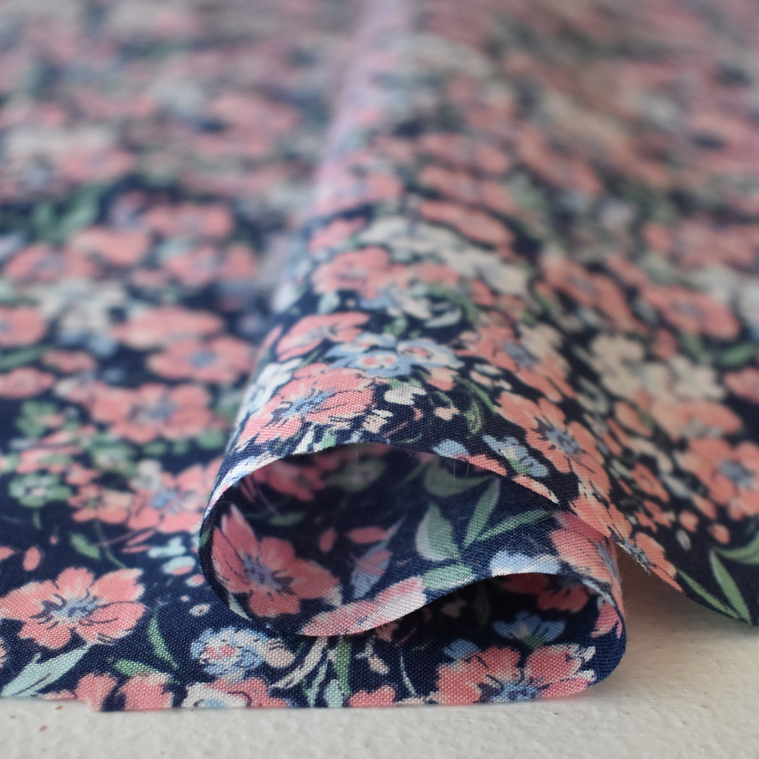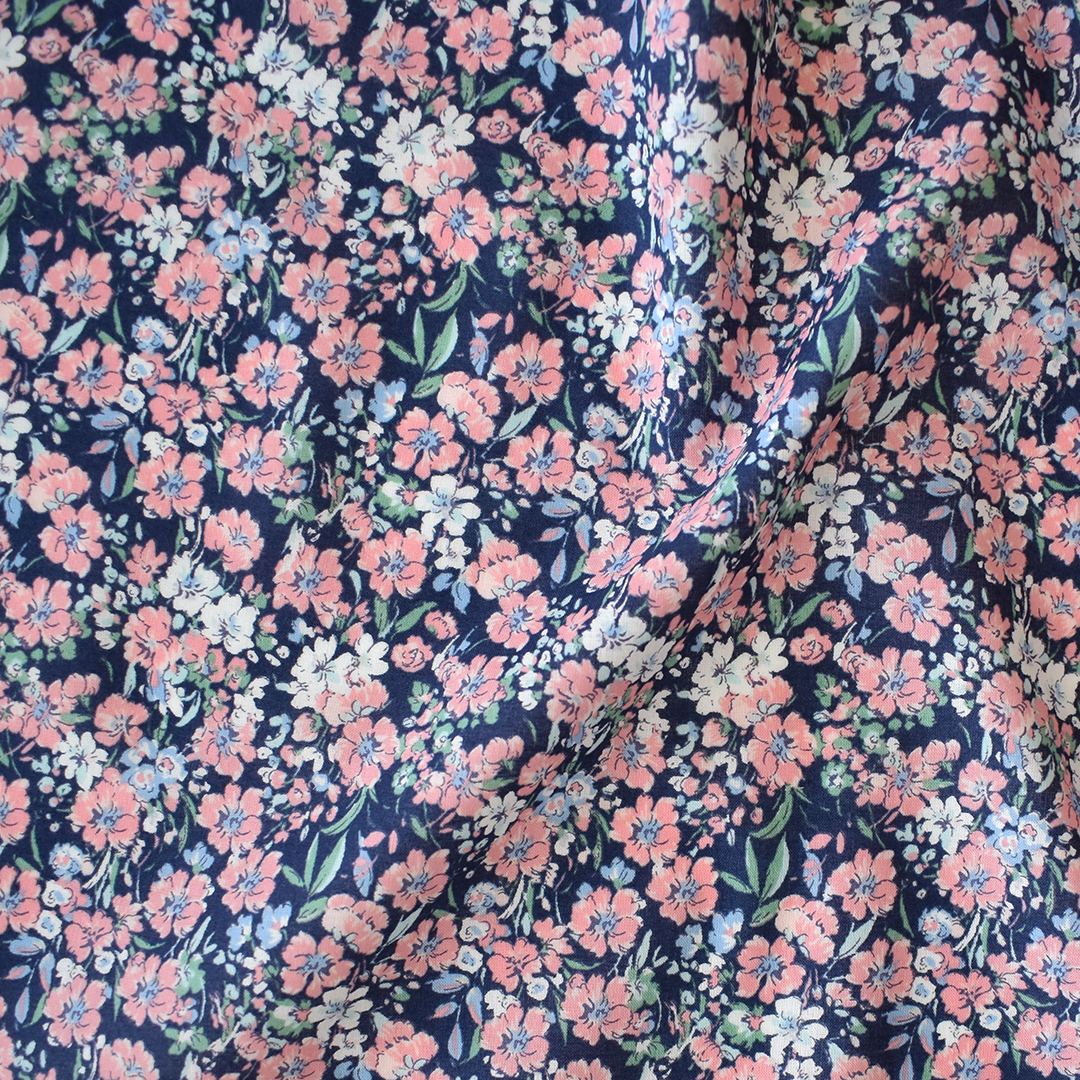 薄手で、程よい透け感があるコットンローンに可愛いらしい花柄をプリントしました。