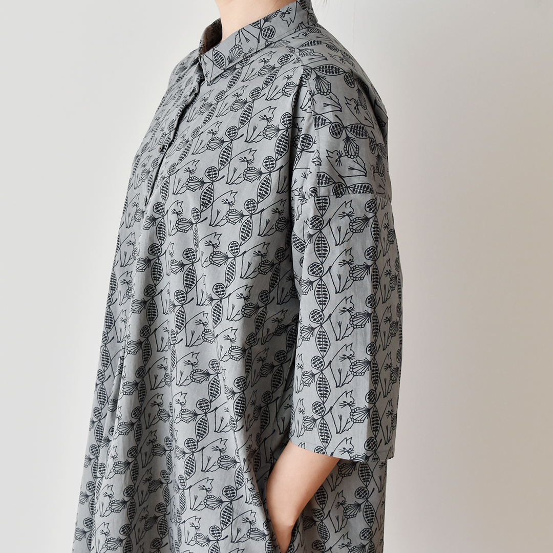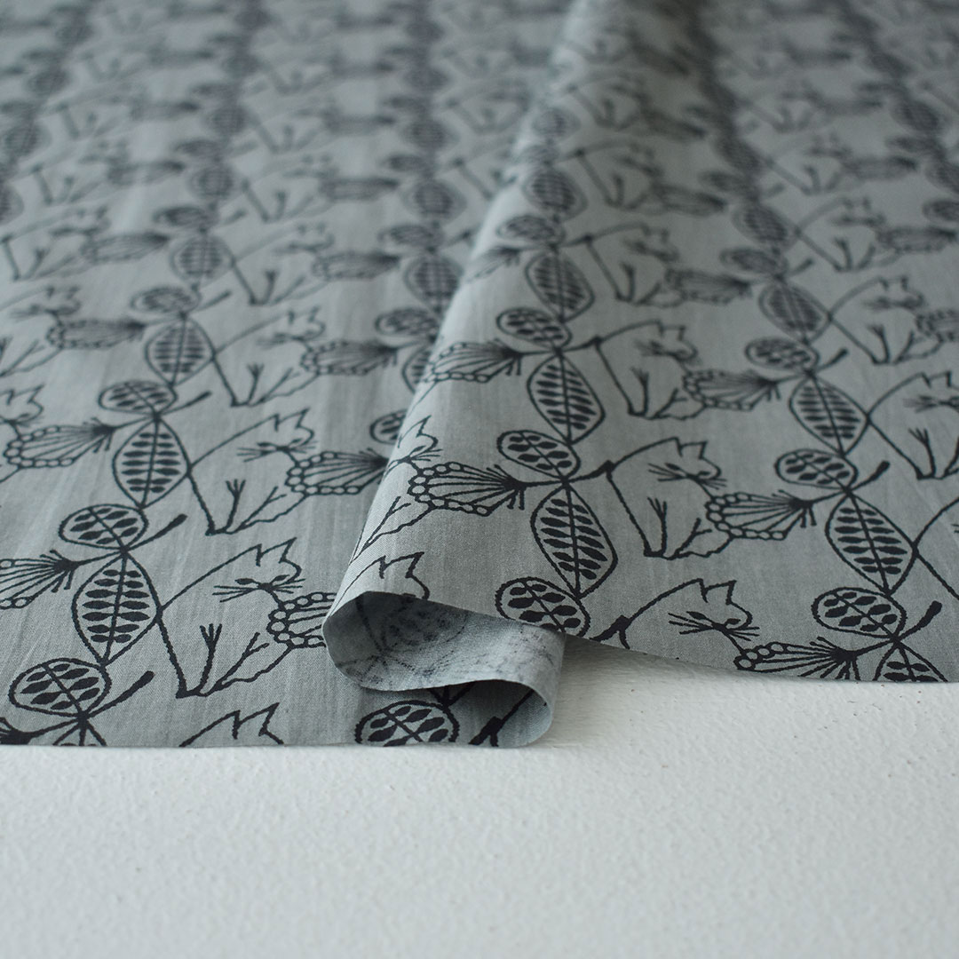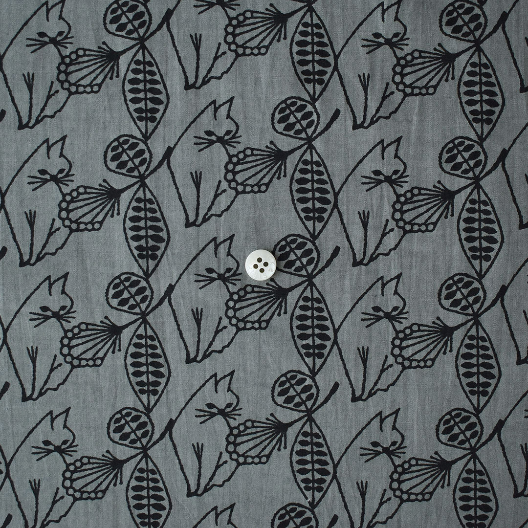猫のフォルムが持つ愛らしさと花の不思議な造形がリズミカルに連なるデザインです。