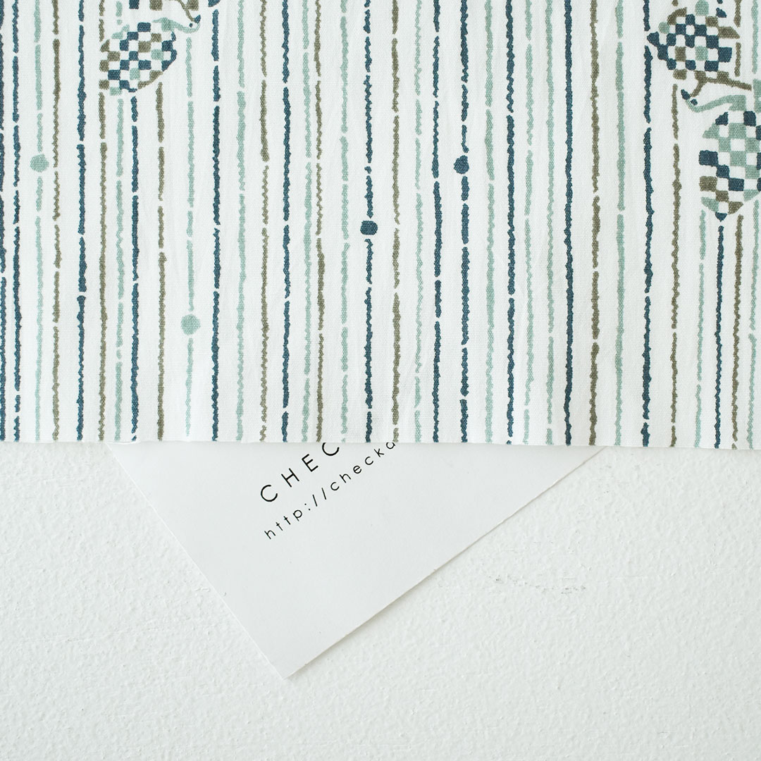 ストライプの図柄の中にチェックの羽根の鳥を忍ばせました。