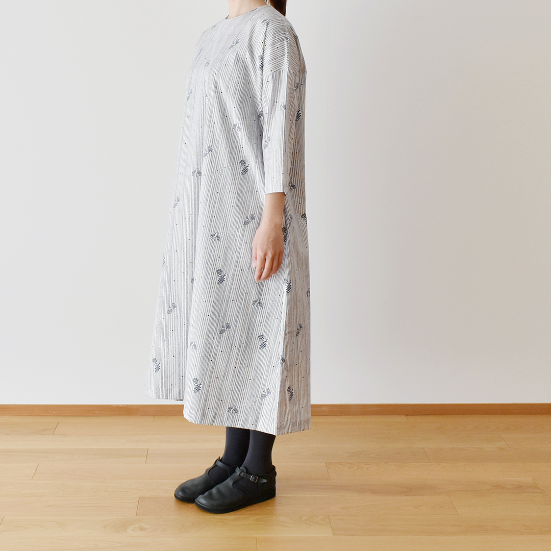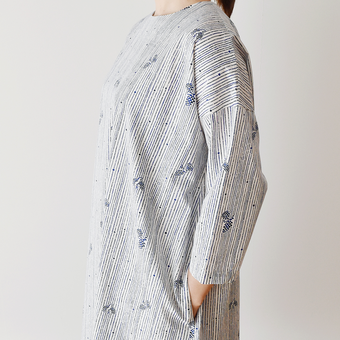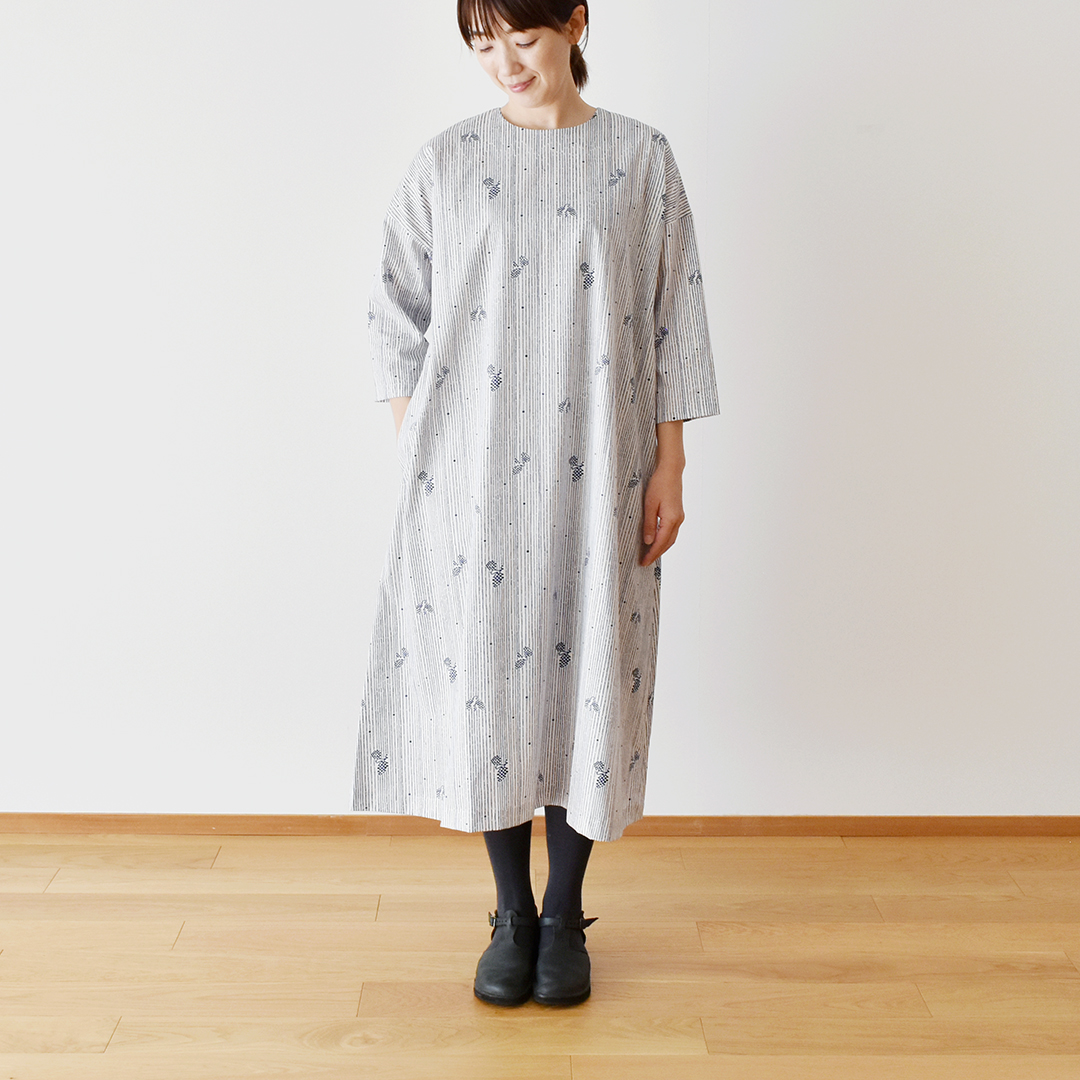 ライトグレージュにブルー系:『CHECK&STRIPEのおとな服 ソーイング・レメディー』(文化出版局) シンプルAラインワンピース