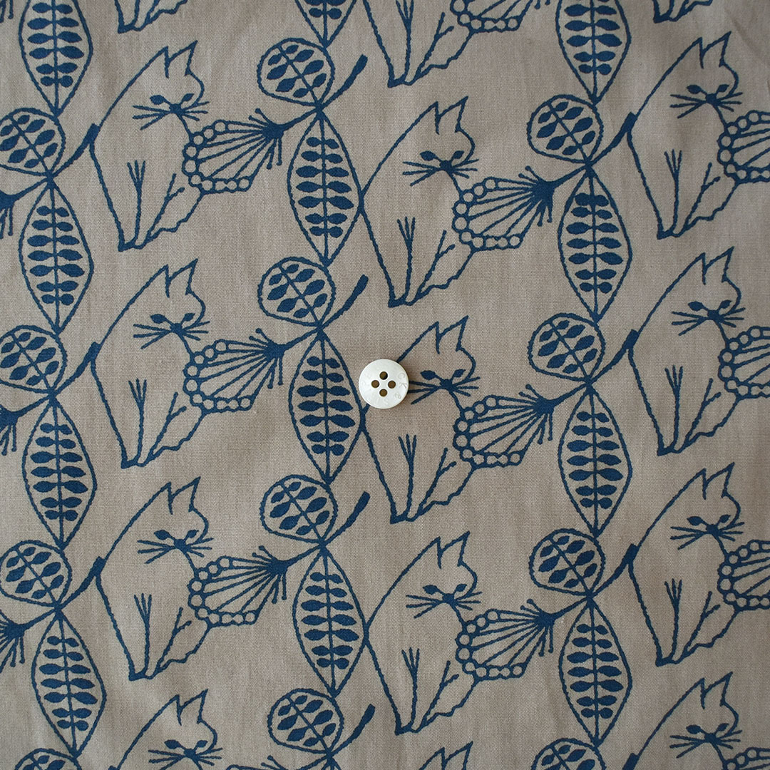 猫のフォルムが持つ愛らしさと花の不思議な造形がリズミカルに連なるデザインです。 -