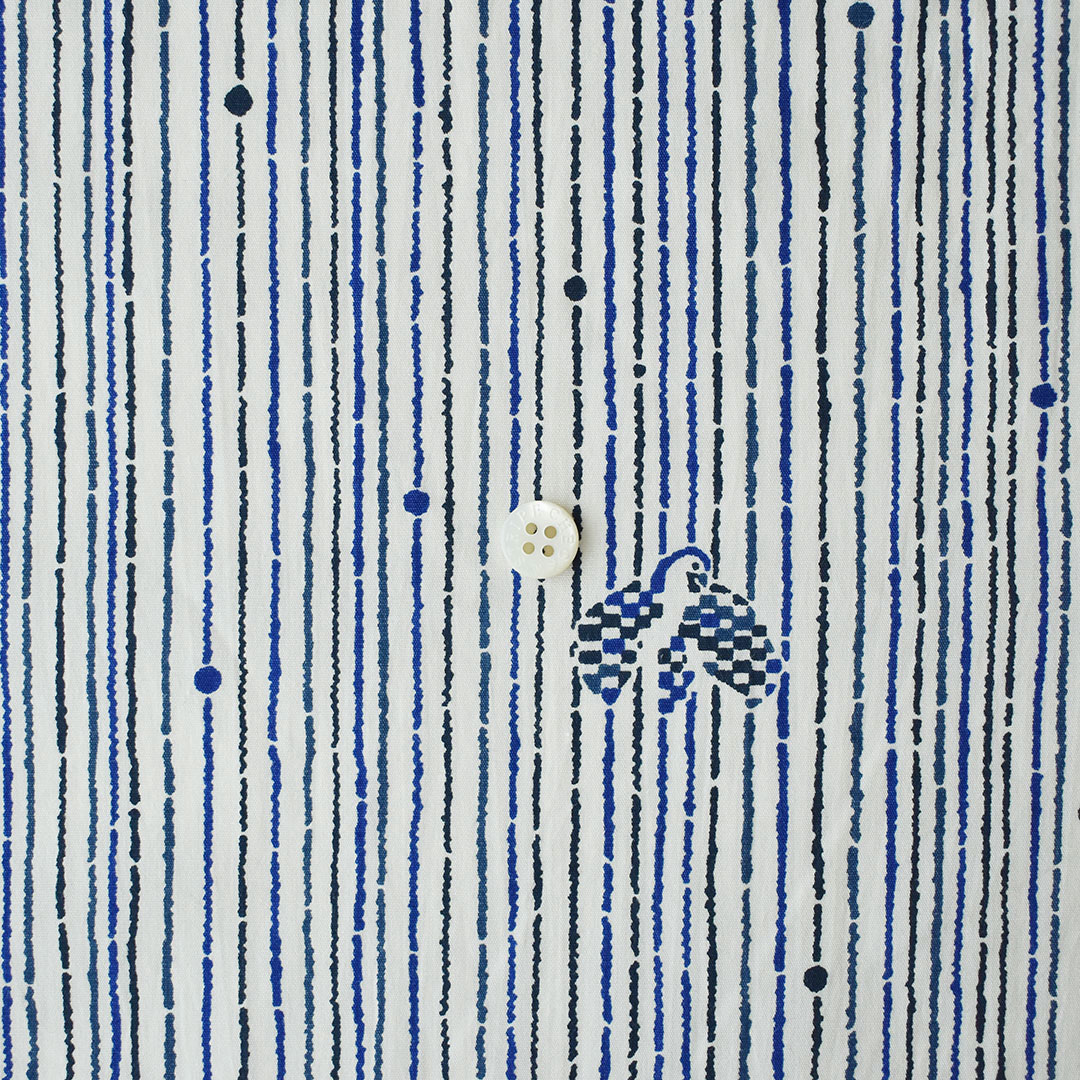 ライトグレージュ地に、ブルー、スモークブルー、ネイビーのラインがデザインされています。 -