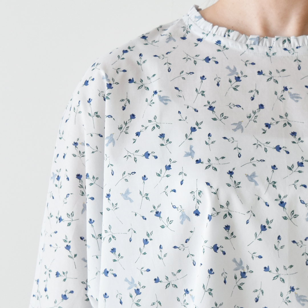 可憐な花を水彩タッチで描いたDemiに、新たに鳥を配した柄です。
