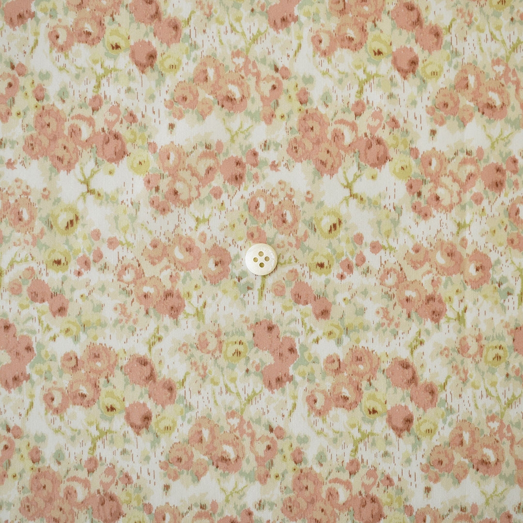 もともとは、リバティの大判のアーカイブ作品にインスパイアされ、1970年代に初めてプリントされたデザインです。シンプルに縮小され、様式化された小さなバラの花の軌跡が典型的な絣風の効果で描かれ、伝統的な織物のタペストリーのエッセンスを思い起こさせます。