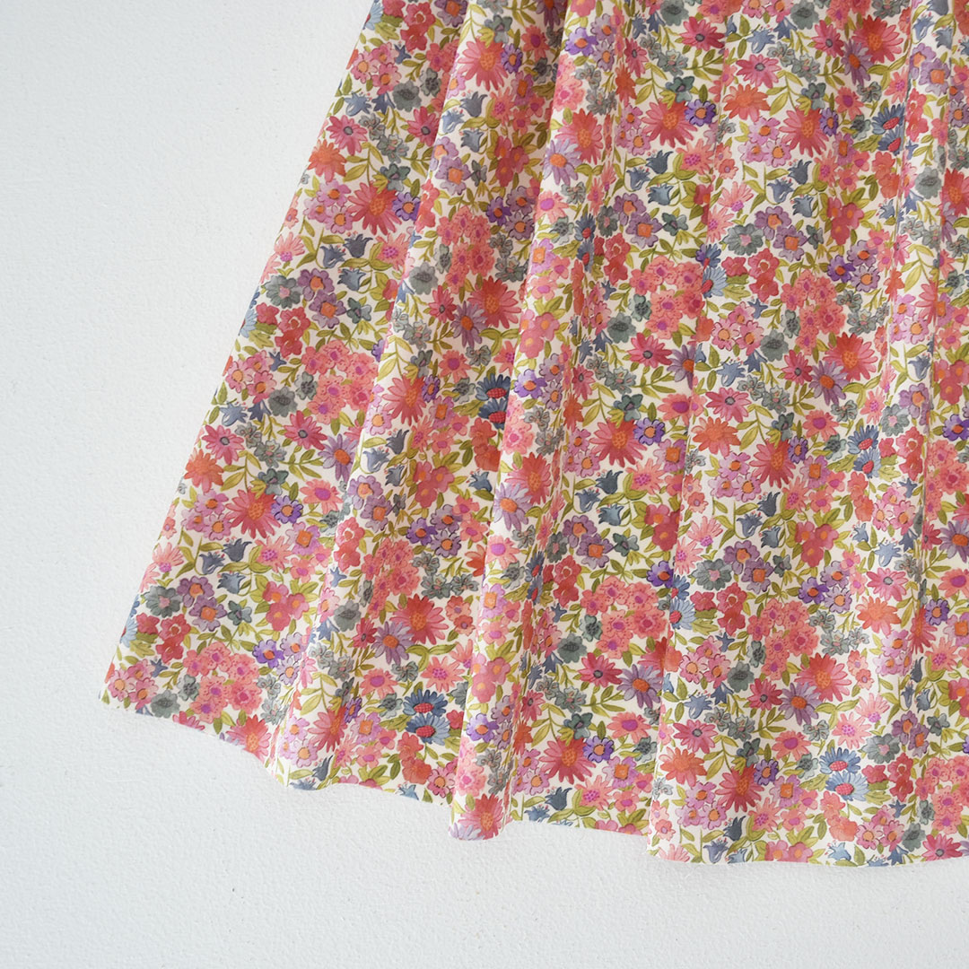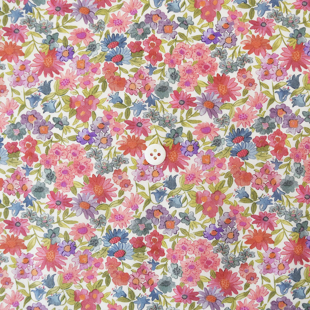 1938年のリバティの生地をベースに、リバティ・デザイン・スタジオによりインクをウォッシュ加工し繊細に描かれた「サンドラ・スプリング」。紅ハコベ、マリーゴールド、ゼニアオイ、ヤブイチゲ、ニチニチソウ、ブルーベルの他、たくさんの優美な植物が描かれています。