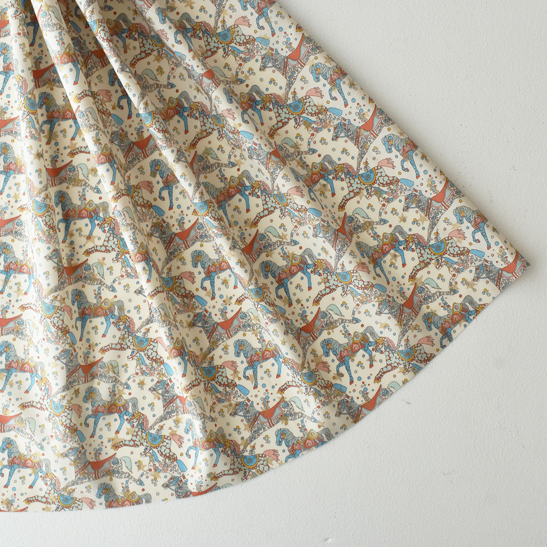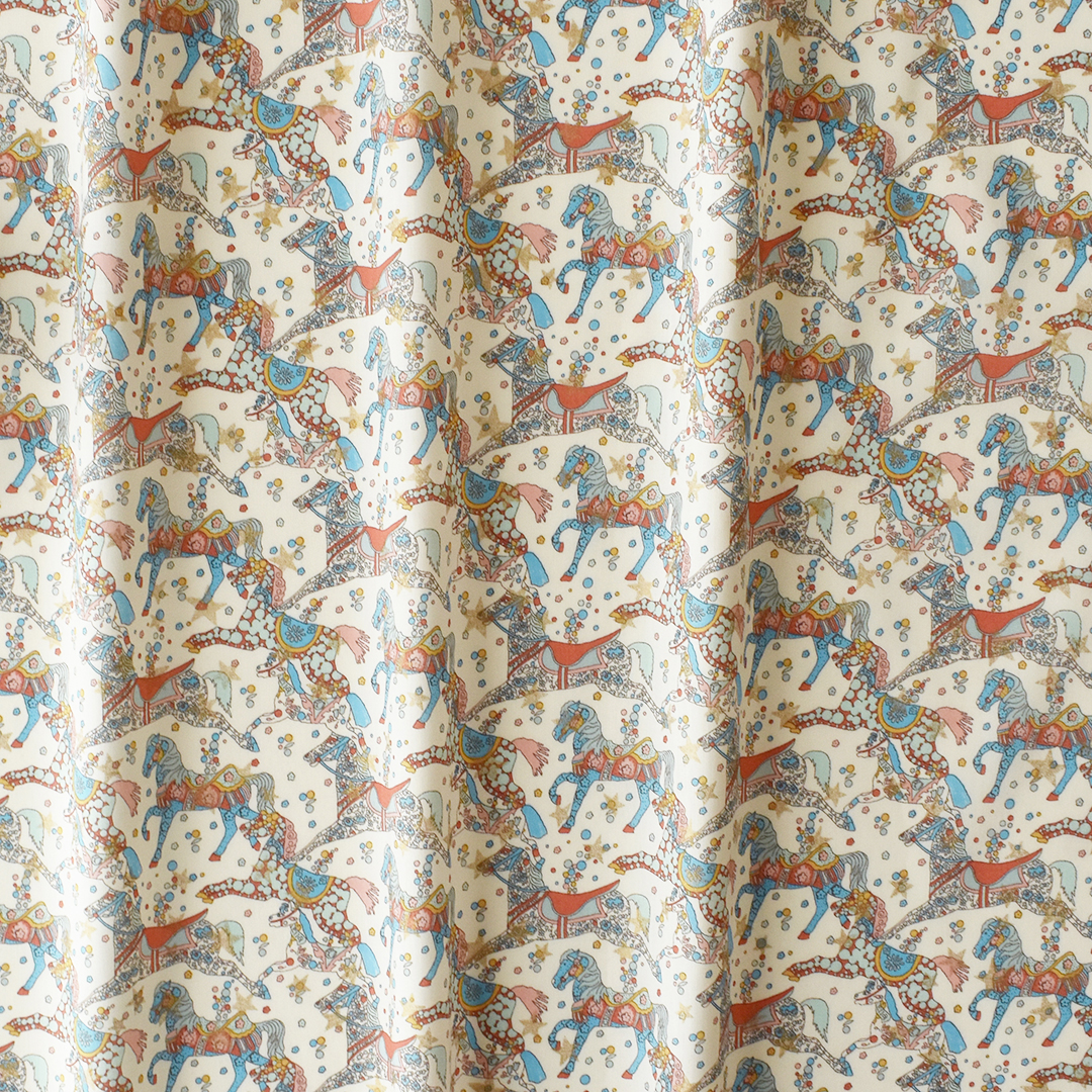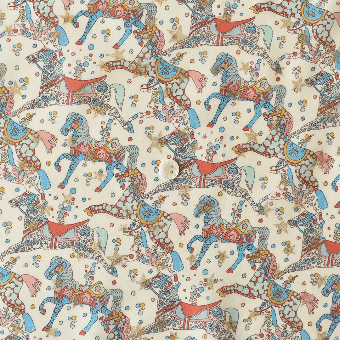 2005年秋冬の人気デザイン「マイ・リトル・ペース」をベースに再解釈された「セレスティアル・ペース」は、カルーセルのポニーたちをモチーフに、クラシックなリバティプリントで華やかに装飾されています。フェスティブコレクション向けに、上からきらめく星のプリントをあしらい、夜空のように幻想的で華やかな雰囲気を演出しています。