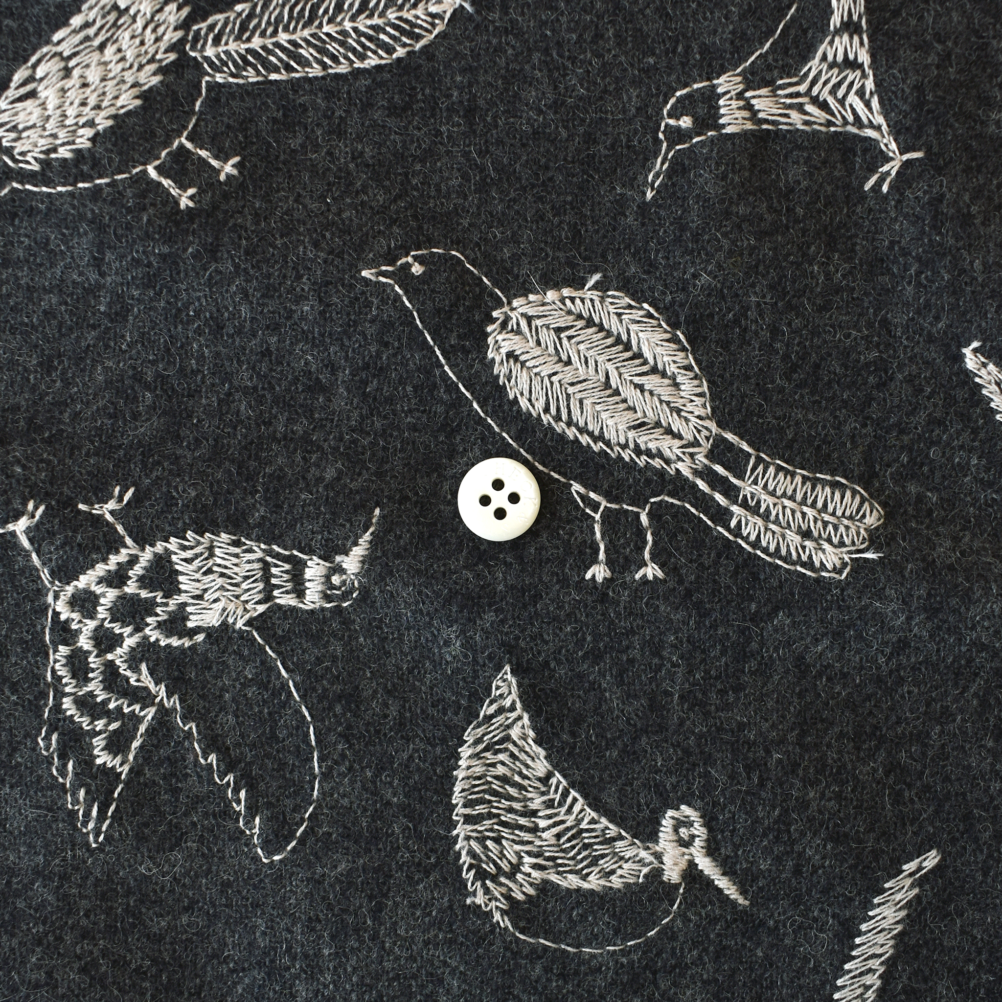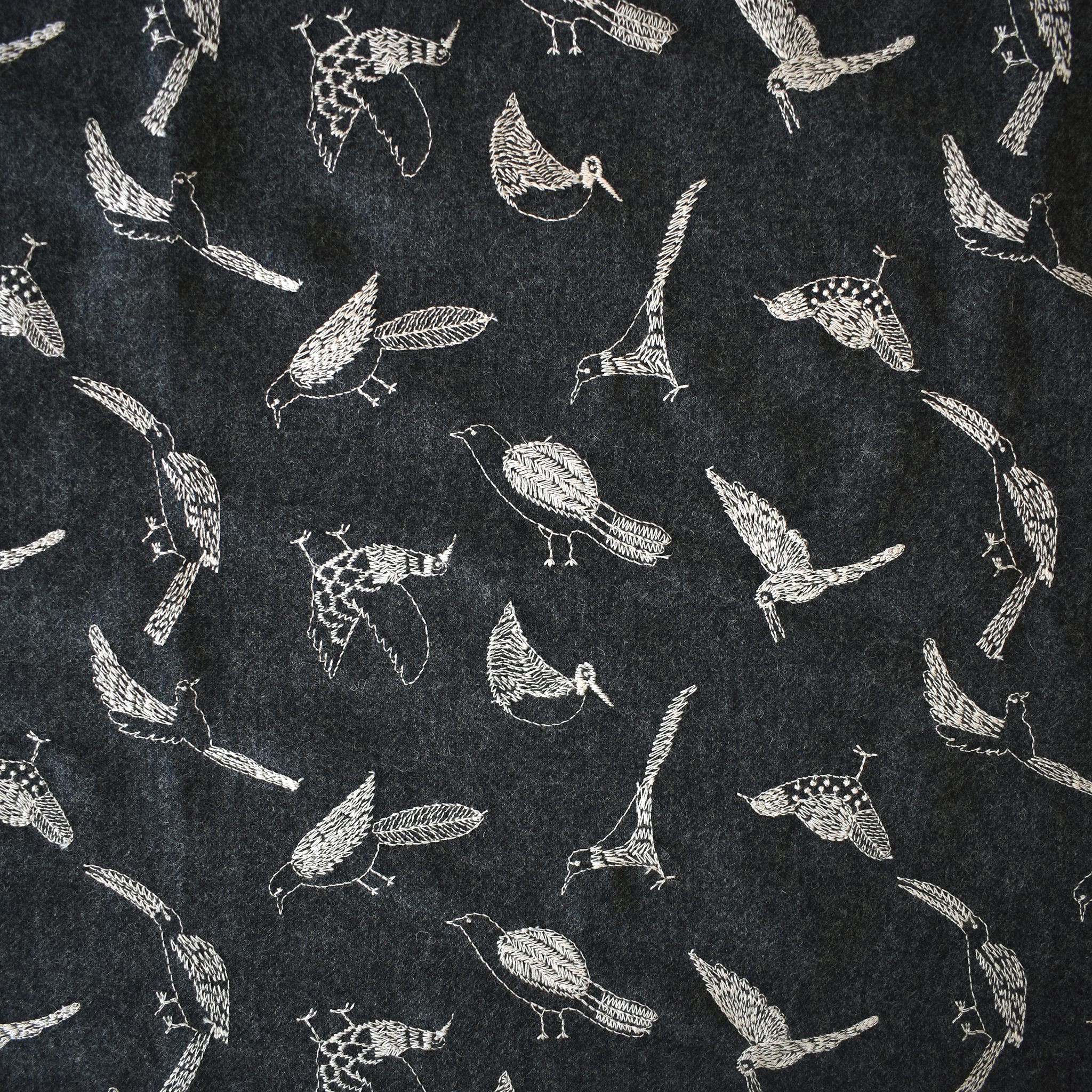 軽くてやわらかな風合いのウールに、中西なちおさんが描かれた愛らしい鳥の刺繍が施されています。