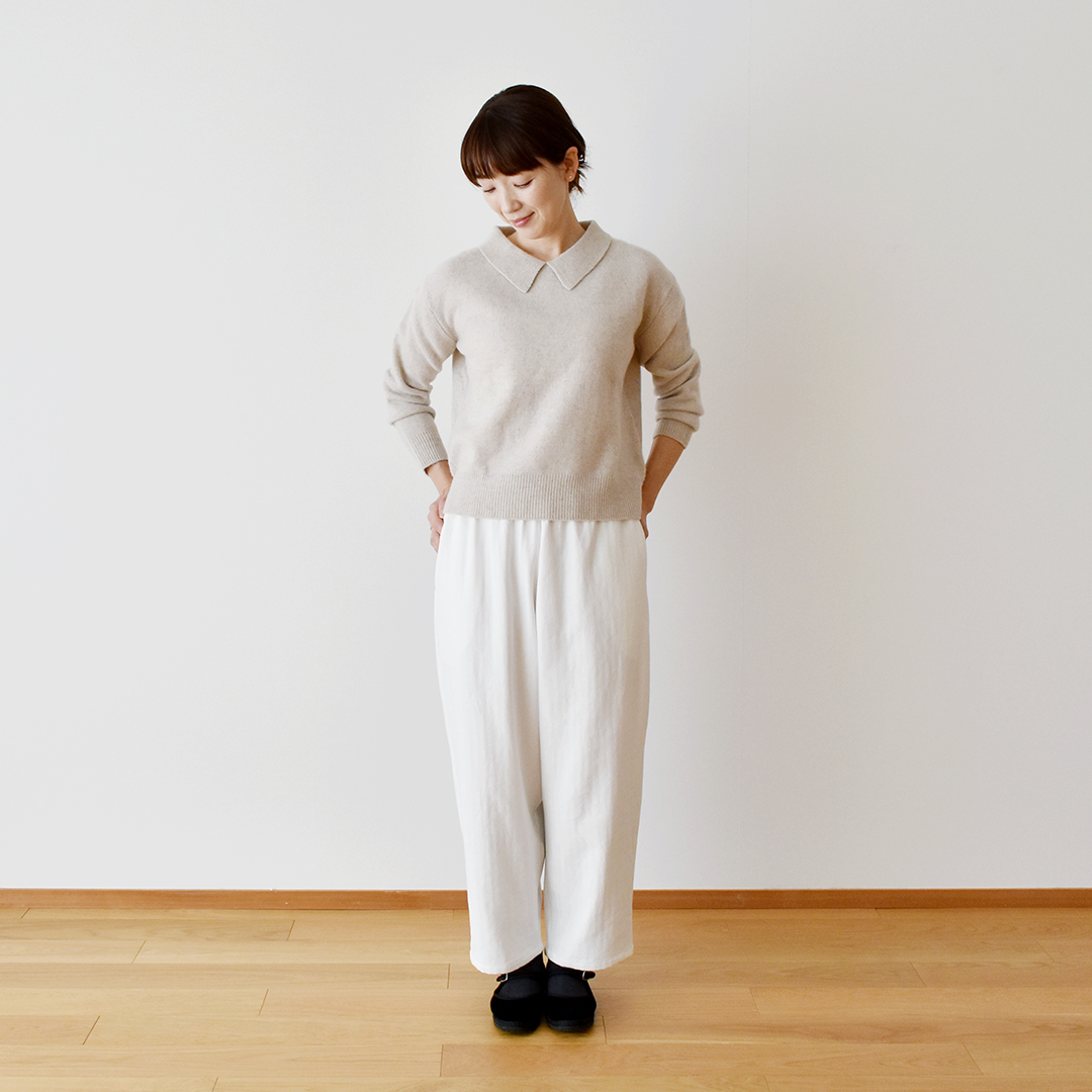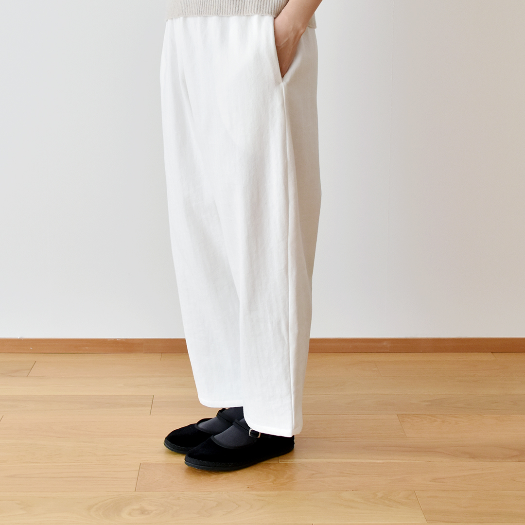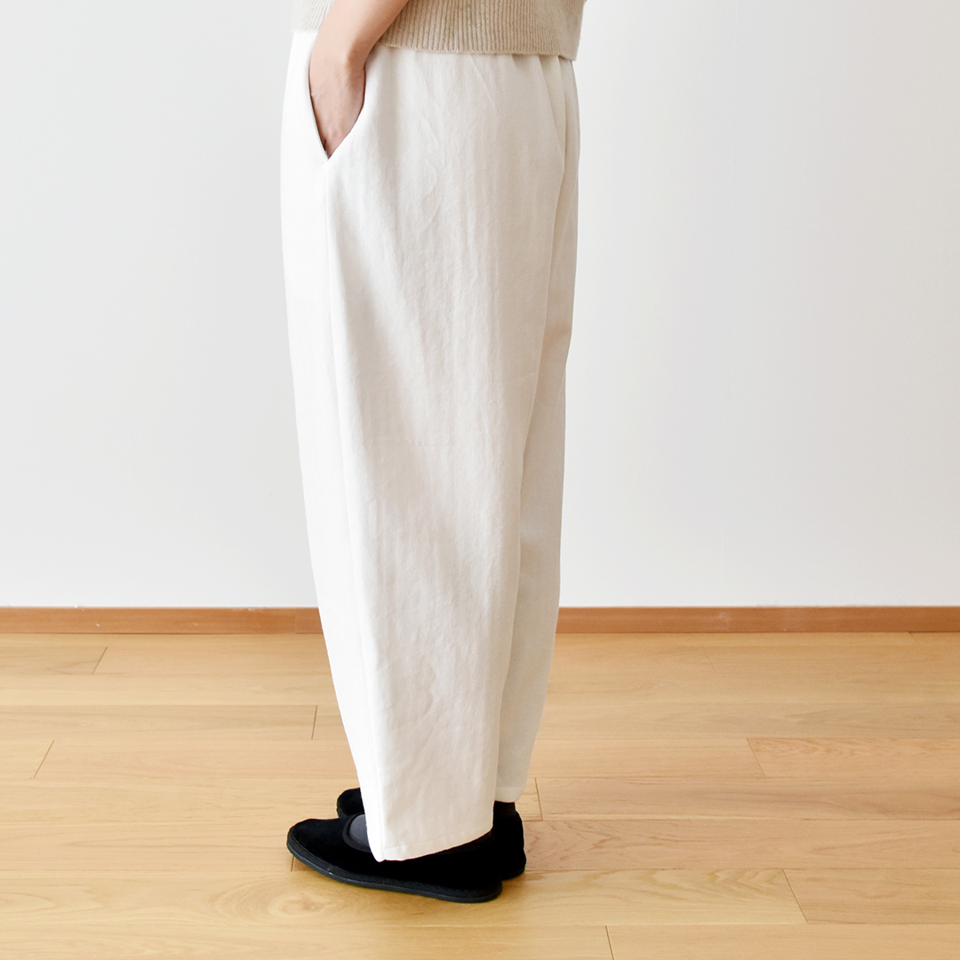オフホワイト:『CHECK&STRIPE COLOUR BOOK 色を楽しむソーイングブック』(文化出版局) シンプルテーパードパンツ ※用尺:140cm幅×S1.7m/M1.9m/L2m