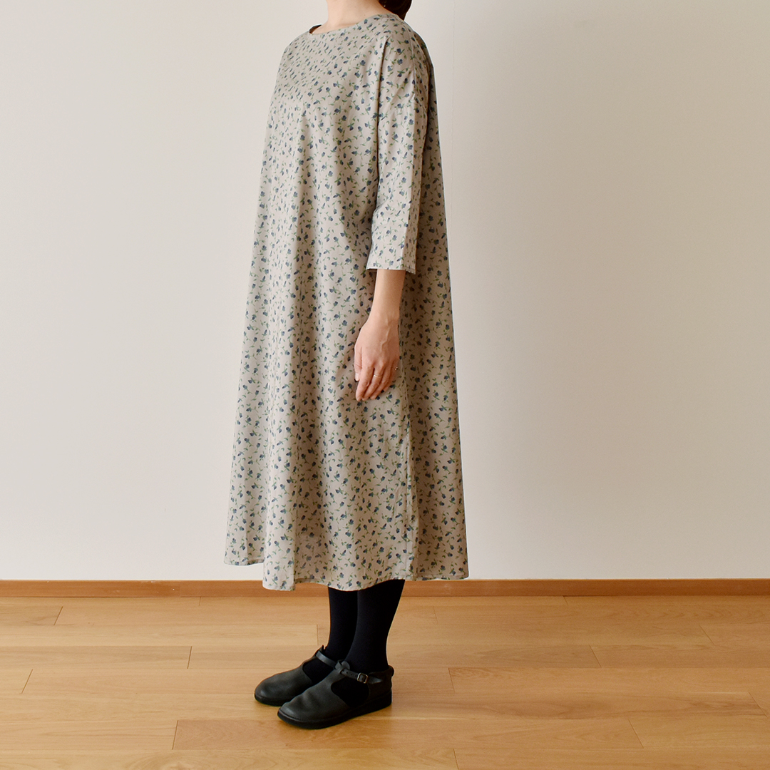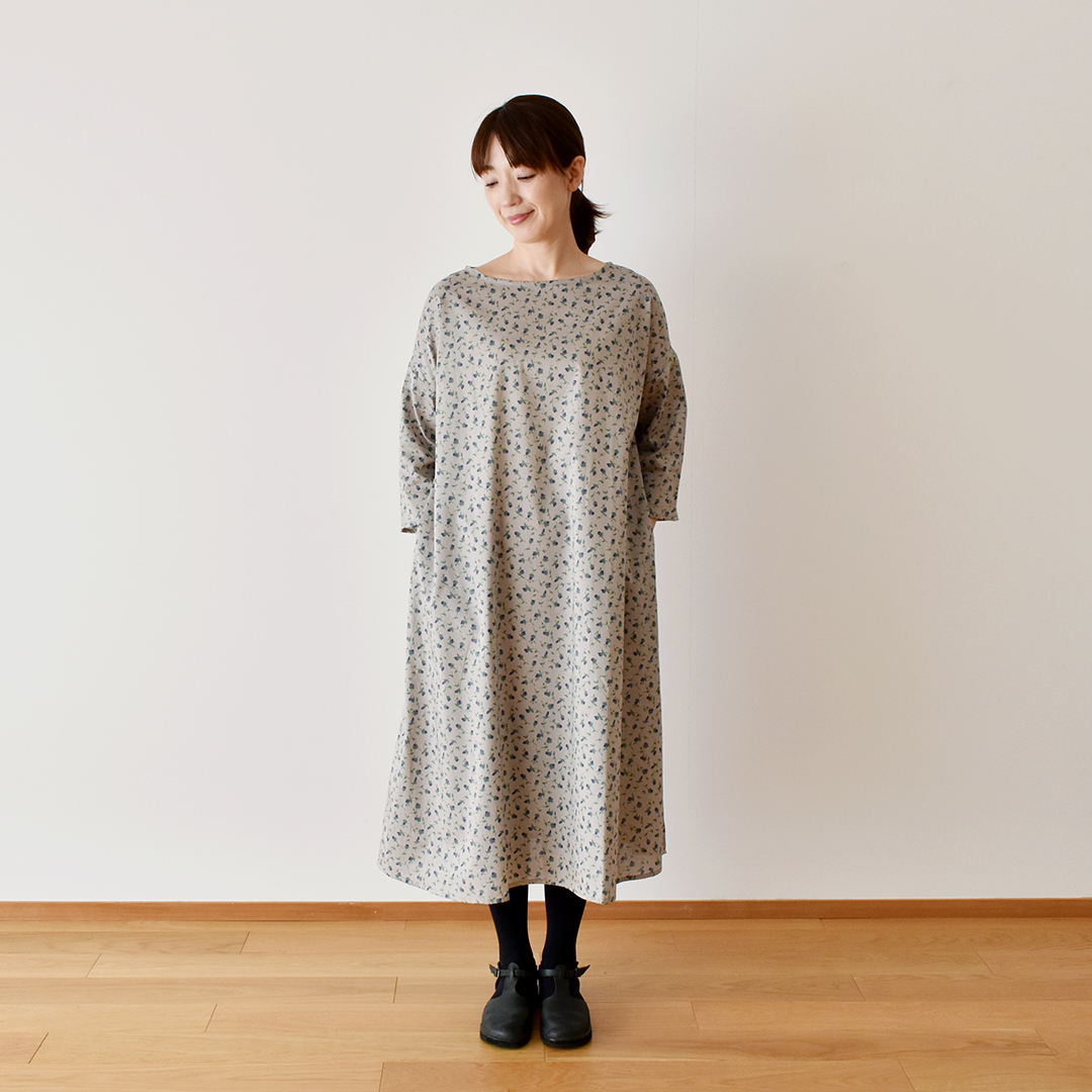 ◎J25B(サンドグレーにスモークブルー):『CHECK&STRIPE Sewing Diary in Paris パリのソーイングダイアリー』(世界文化社) ボートネックのワンピース